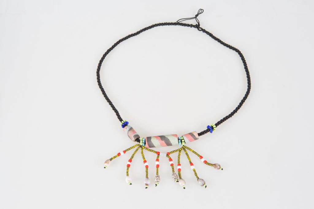 在撒奇萊雅中的墨綠色代表民族精神,運用小珠編串成細長的流蘇,有著復古的時尚美。