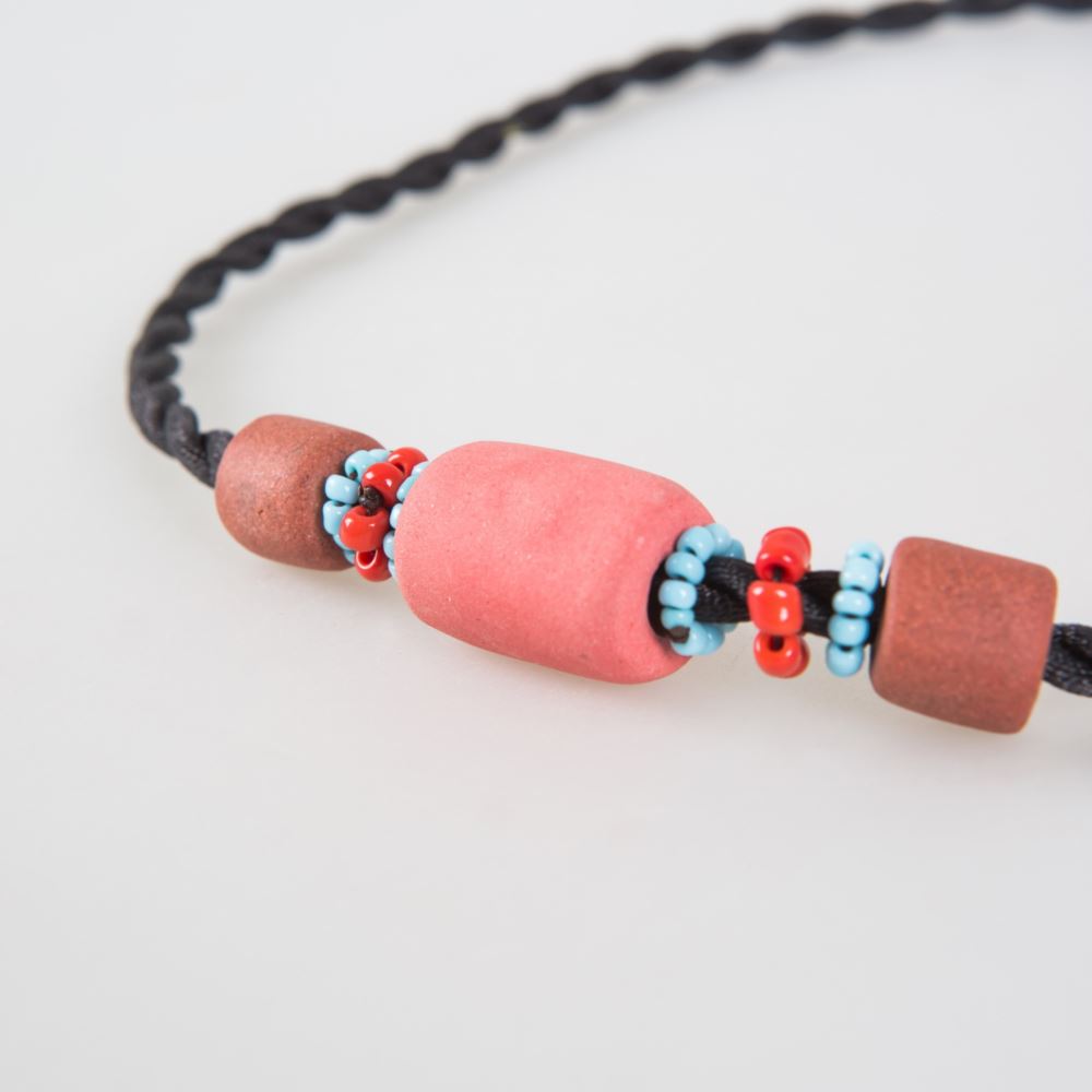 手工燒製的陶珠,質感細膩,帶有傳統的古味。