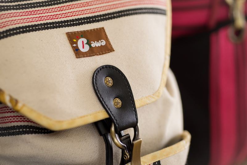 使用獨有花蓮生產製造傳統花紋花布製成後背包。
