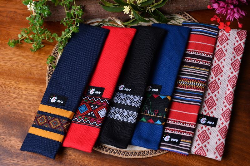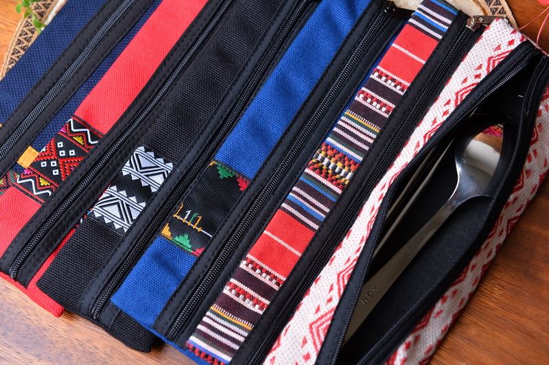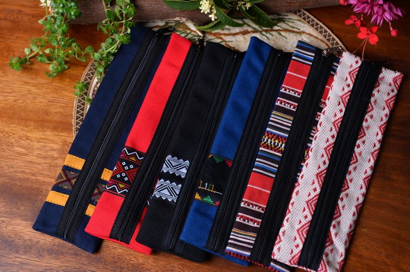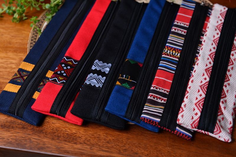 如今,徐香蘭也將花蓮六大原住民的傳統圖紋,運用在她的作品中,製作出實用又兼具美觀的零錢包、後書包、湯筷組等,富含原民記憶的文創商品。