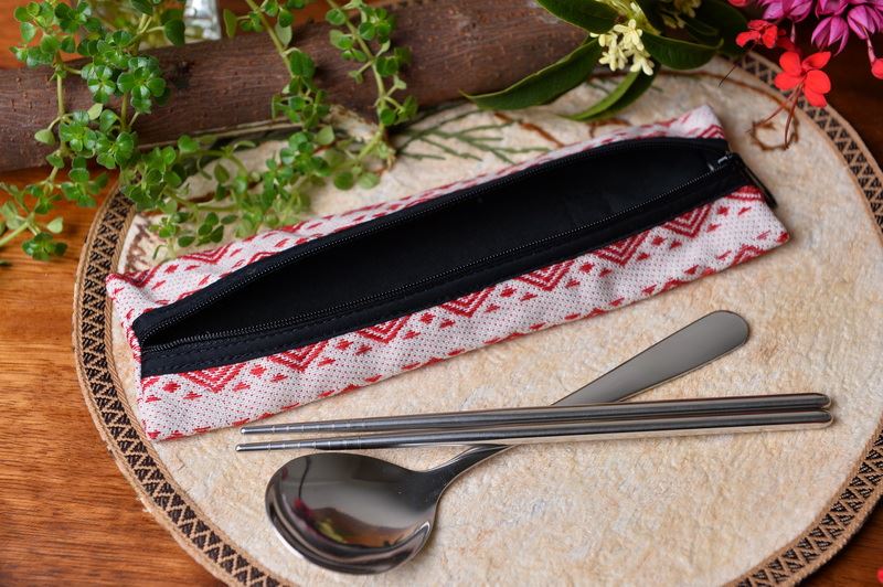 外觀長方型、紅白相間的太魯閣族紋。內裡為黑色。