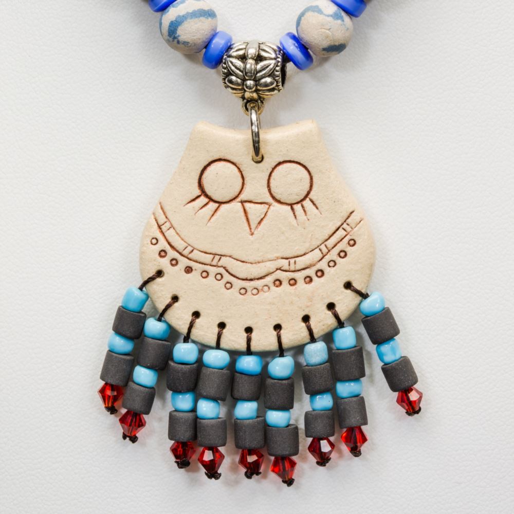老師想要將不同族群文化互相融合的意涵,表達在作品中,透過自學原民手工藝,希望經由陶珠、陶器等作品,可以將自己的心意放在裡頭,像是熱賣商品「喜咕咕」系列,裡面有著醒目的貓頭鷹,其實貓頭鷹在鄒族中,代表了報喜鳥,充滿了滿滿正面能量。