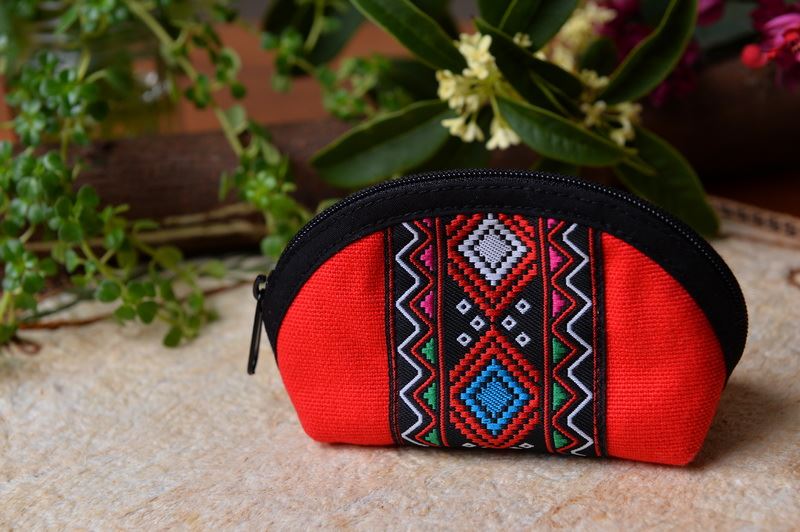 使用獨有花蓮生產製造傳統圖騰花紋布製成,內裡棉布柔軟材,可輕易折起或當作包中袋收納小物。