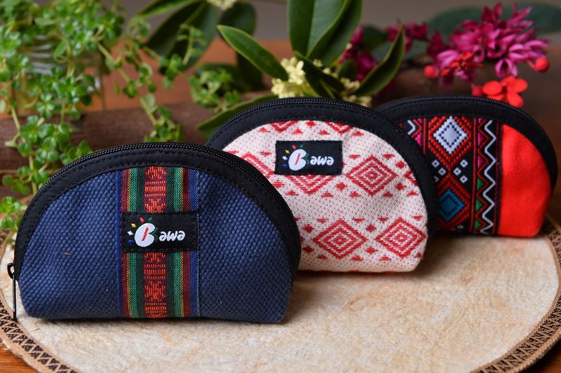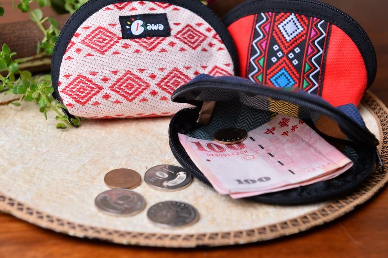 使用獨有花蓮生產製造傳統圖騰花紋布製成,內裡棉布柔軟材,可輕易折起或當作包中袋收納小物。