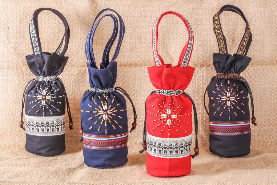 每個水福袋都配上不同色彩的編織和裝飾,相當地別緻。