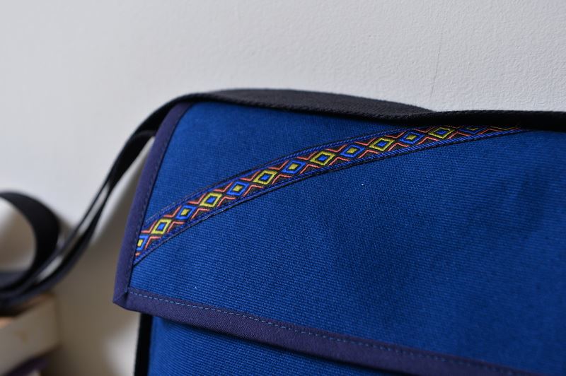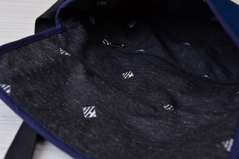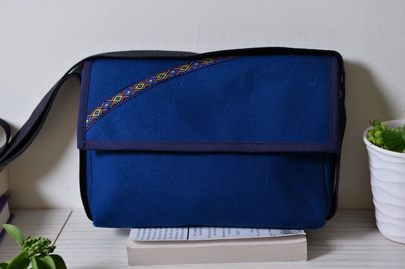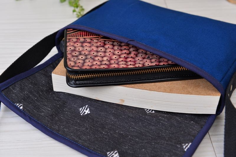 外觀長方形、深海藍襯著布農族紋,內裡是個性黑配白色菱形幾何圖形