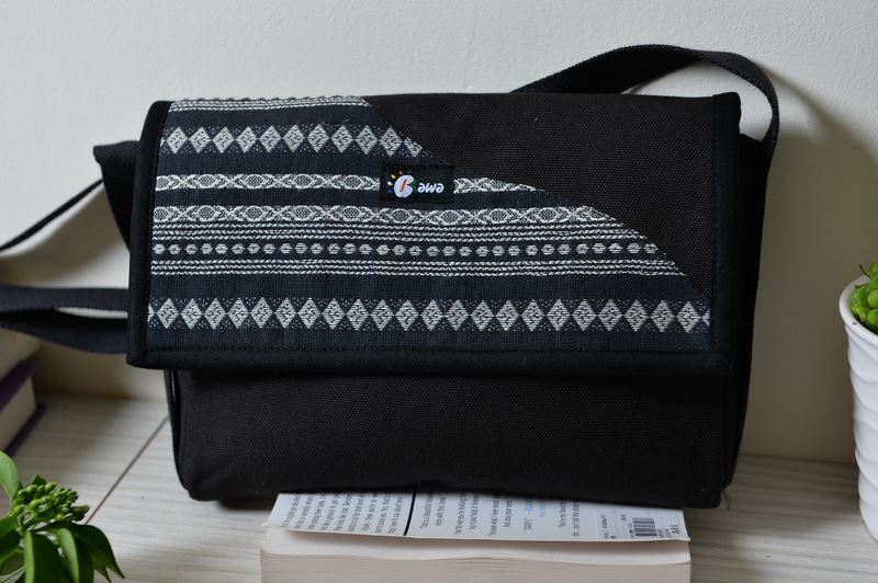 外觀長方形、黑白配噶瑪蘭族紋,內裡為動物斑紋
