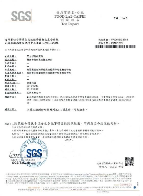 本產品通過SGS檢測之310項農藥殘留均未驗出,檢驗編號:FA/2016/C3788