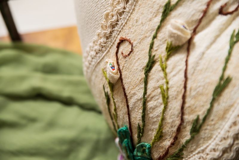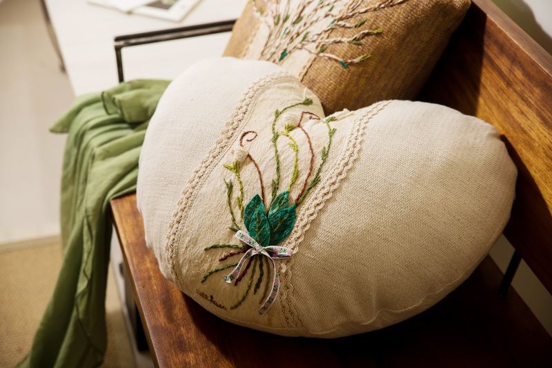 曾經在婚紗店工作的她,也專研過家具的彩繪,一路摸索前進,建立她創作上的色彩敏銳度與想像力,為了跳脫構樹皮的傳統製作印象,她運用現代的布料與編織技術,融入原住民元素,增添時尚感,讓年輕的族群也能接受傳統的事物。