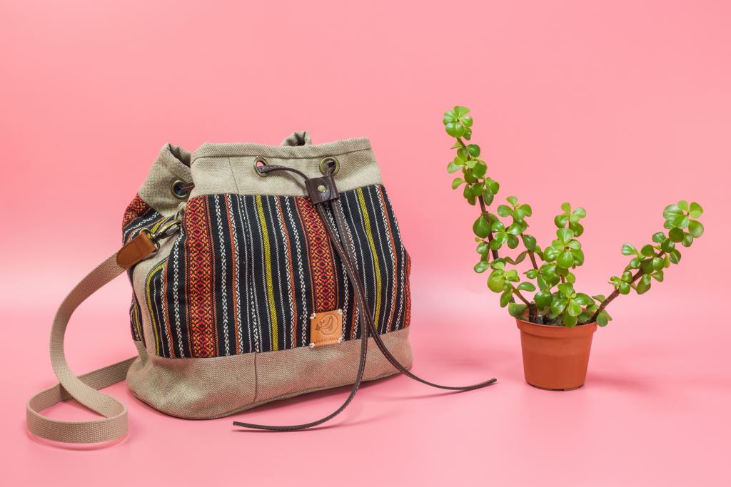 充滿原民風格的布料與抽繩搭配,包包更顯獨特。