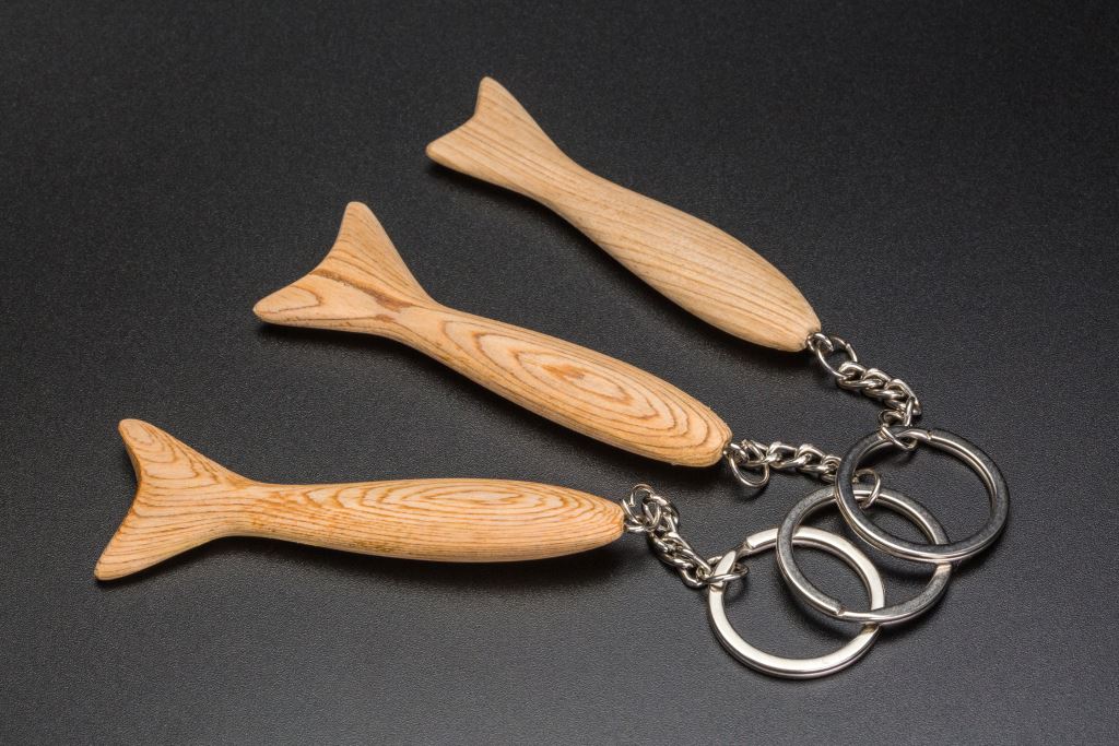 由檜木製成小巧可愛的小魚,陪你走過回家的路。