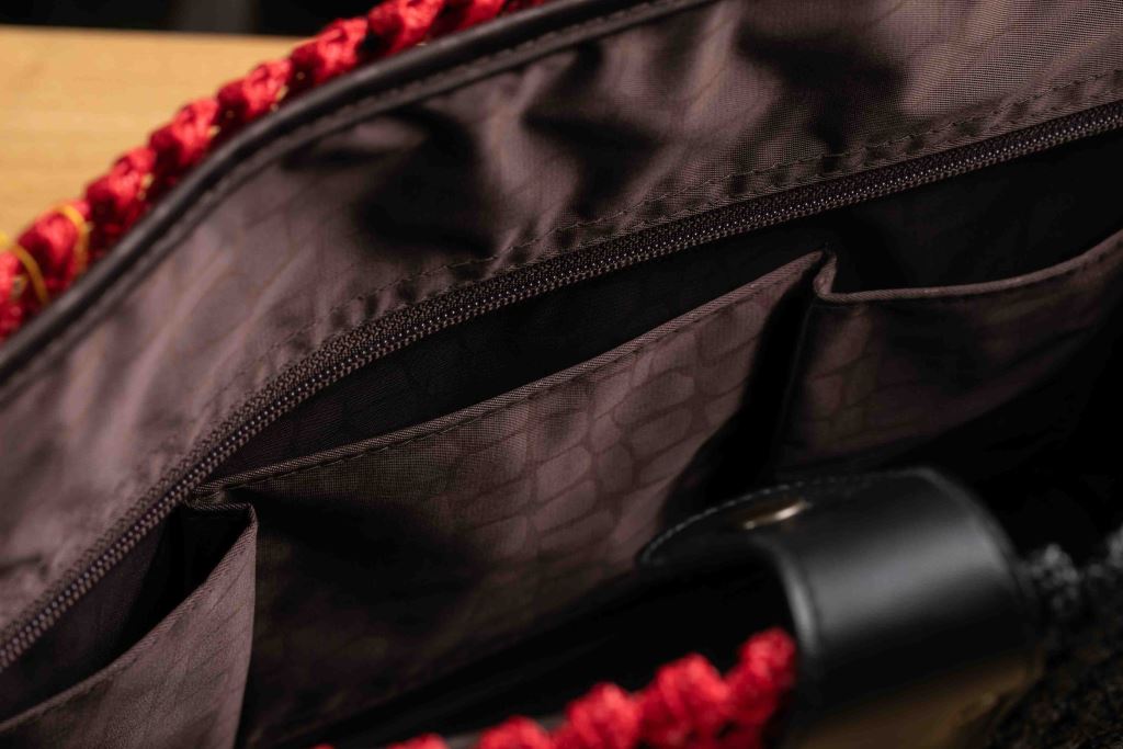 內裡附硬底板及拉鏈夾層,堅固實用。