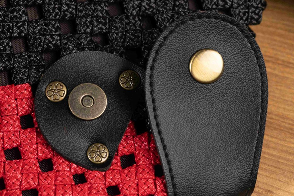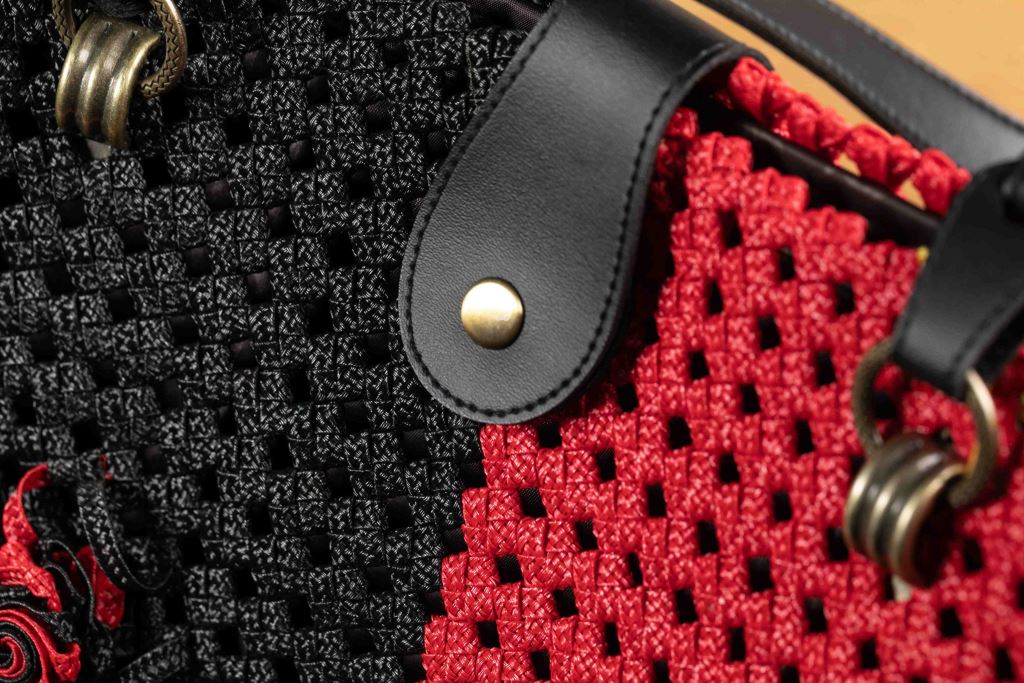 提把有別出心裁的交叉編織,適合肩背或手拿。
