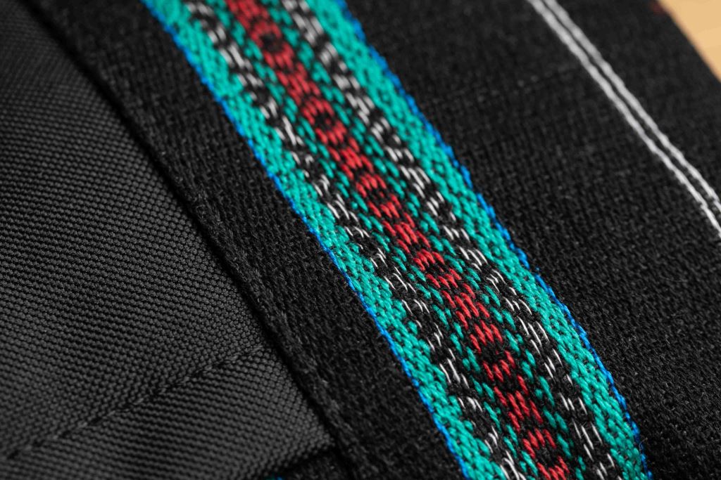 底部和前方都結合了太魯閣圖騰的特色斜背包。