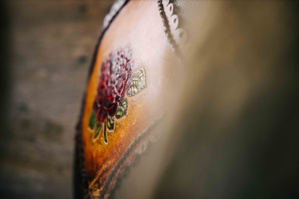 除此之外,其中的工藝也包含許多眉眉角角,除了需反覆上色晾乾外,完成前還需要再塗上一層亮光油,保持皮雕色彩的飽滿、鮮豔,多道程序馬虎不得!