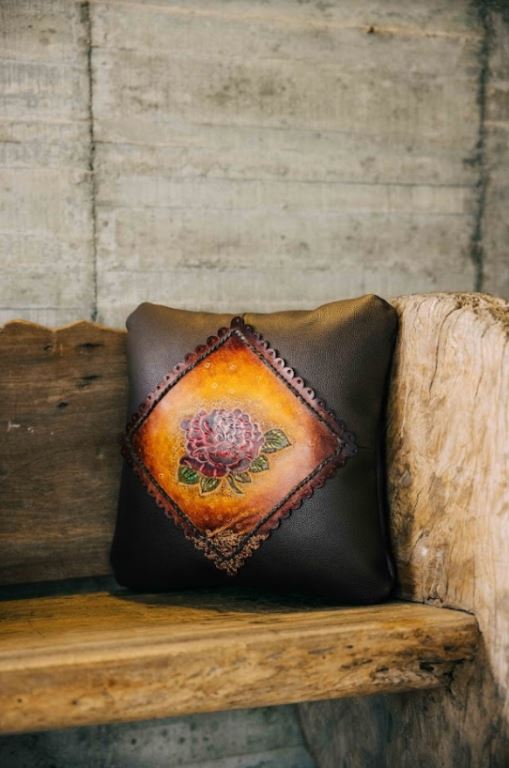 厚實的純牛皮材質一摸就知道,溫潤扎實的手感為簡單的抱枕增添質感。