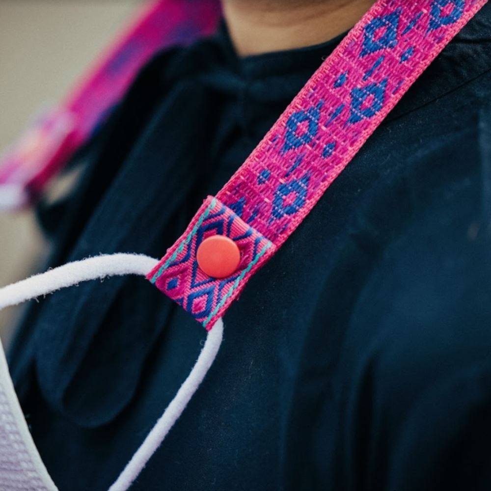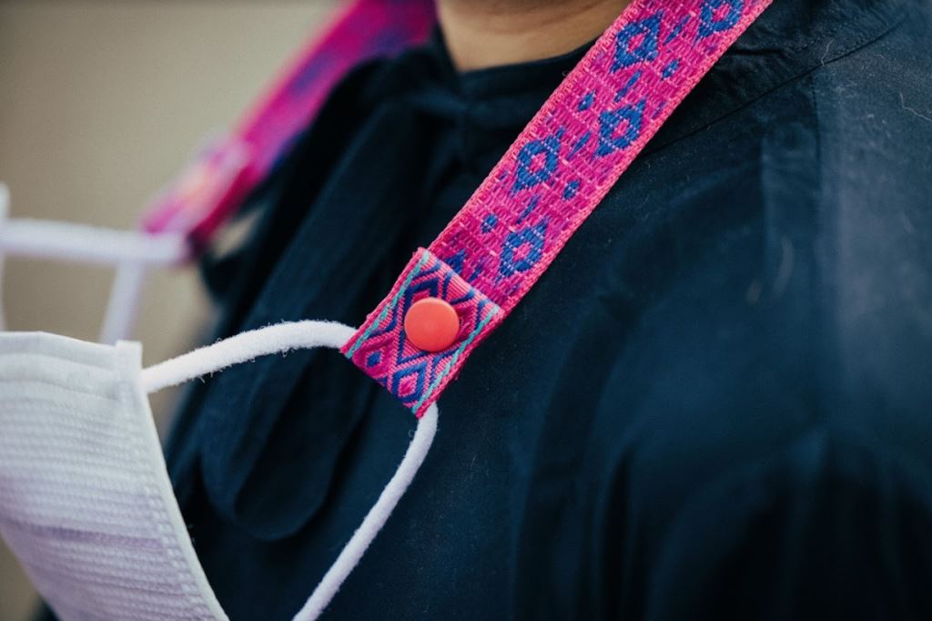 以圖騰和搶眼的色系,製作出這款「防走失」口罩鍊!