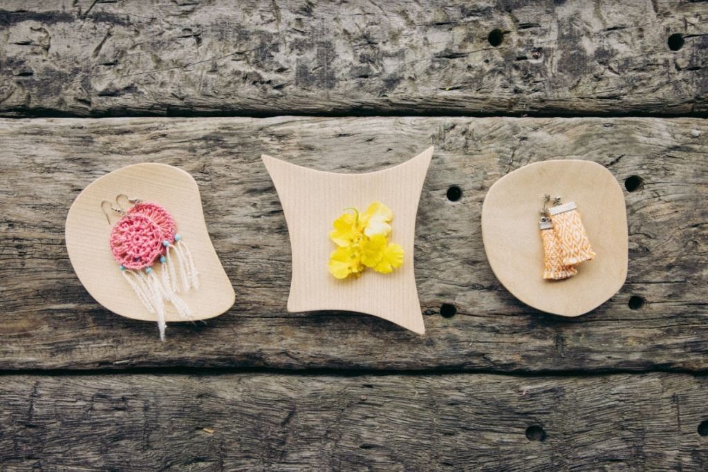 幾何形狀的木製小盤皆無固定尺寸(但約略為長14cm * 寬8cm),