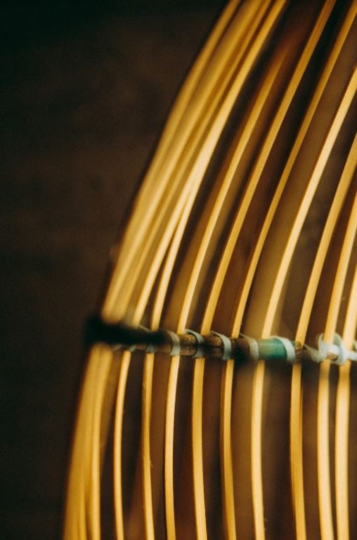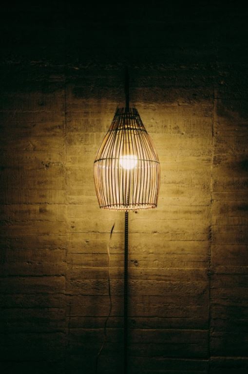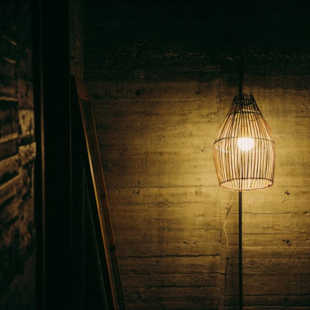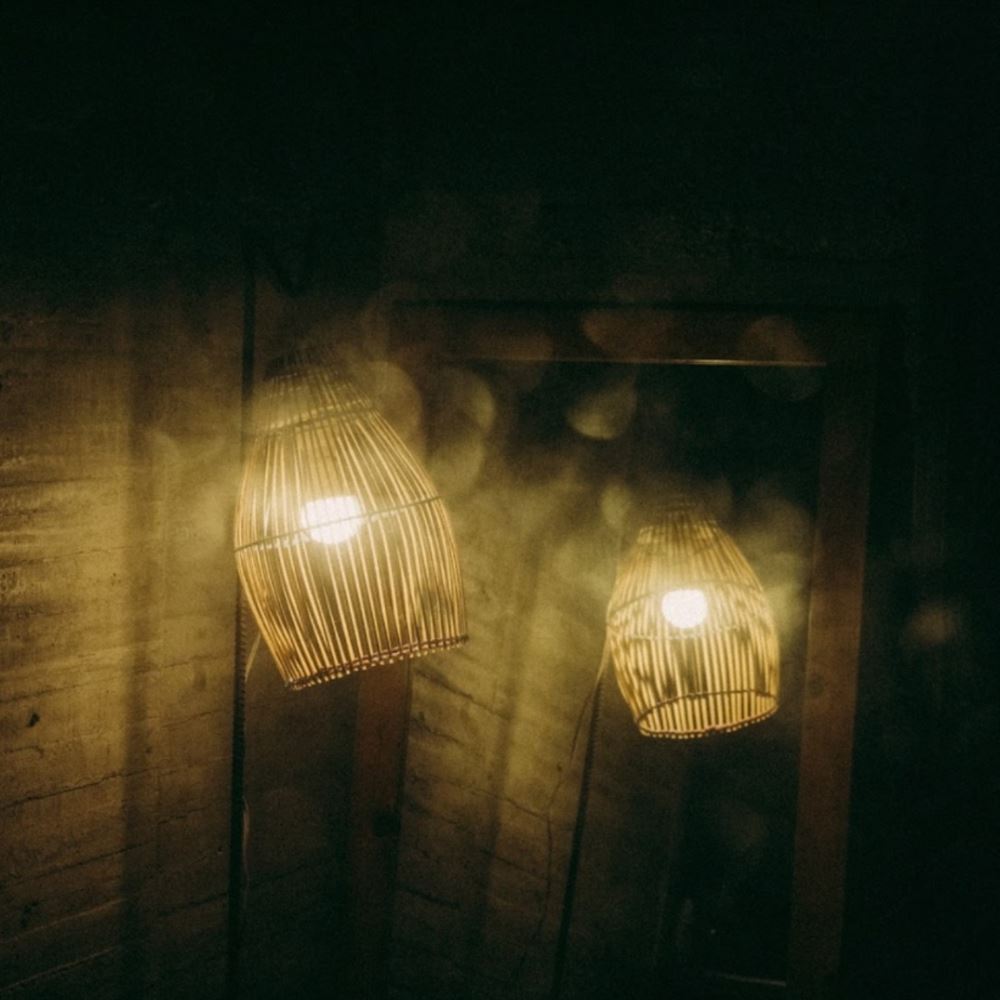 故使用進口的天然黃藤,沿用其高度彈性的特質,製成宛若鳥籠般的天然燈罩,