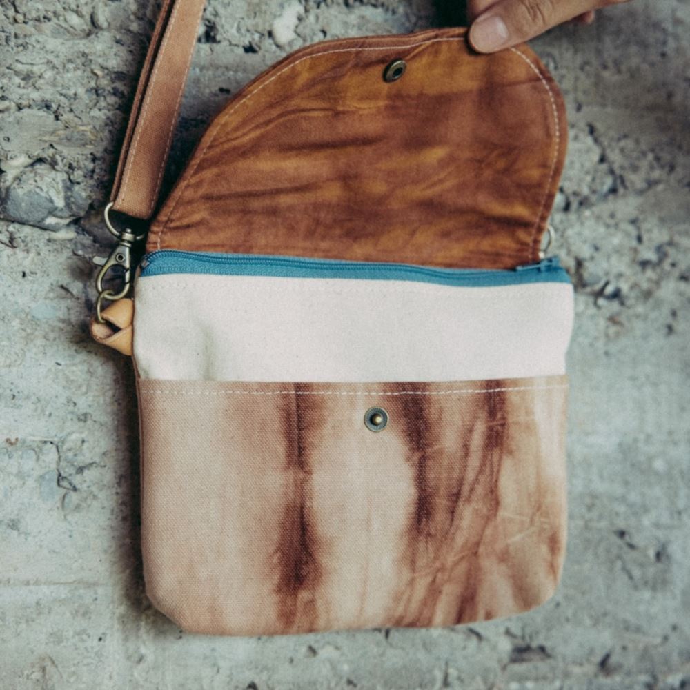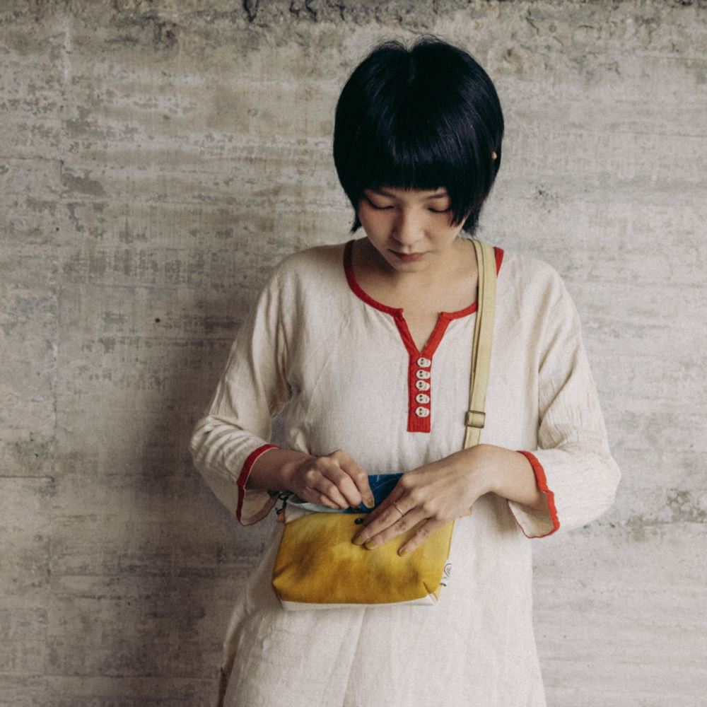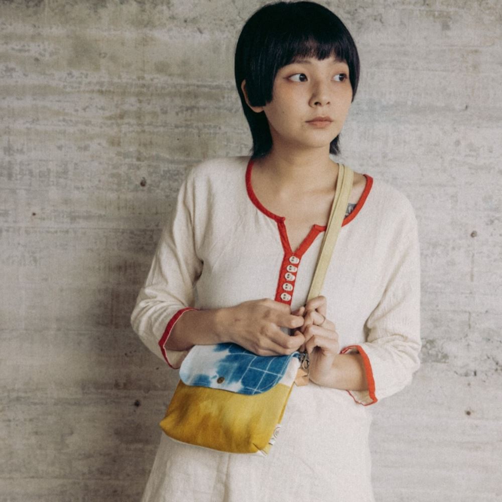 此款植物染包屬於小巧型側背包,調整背帶長度想單肩背也OK!