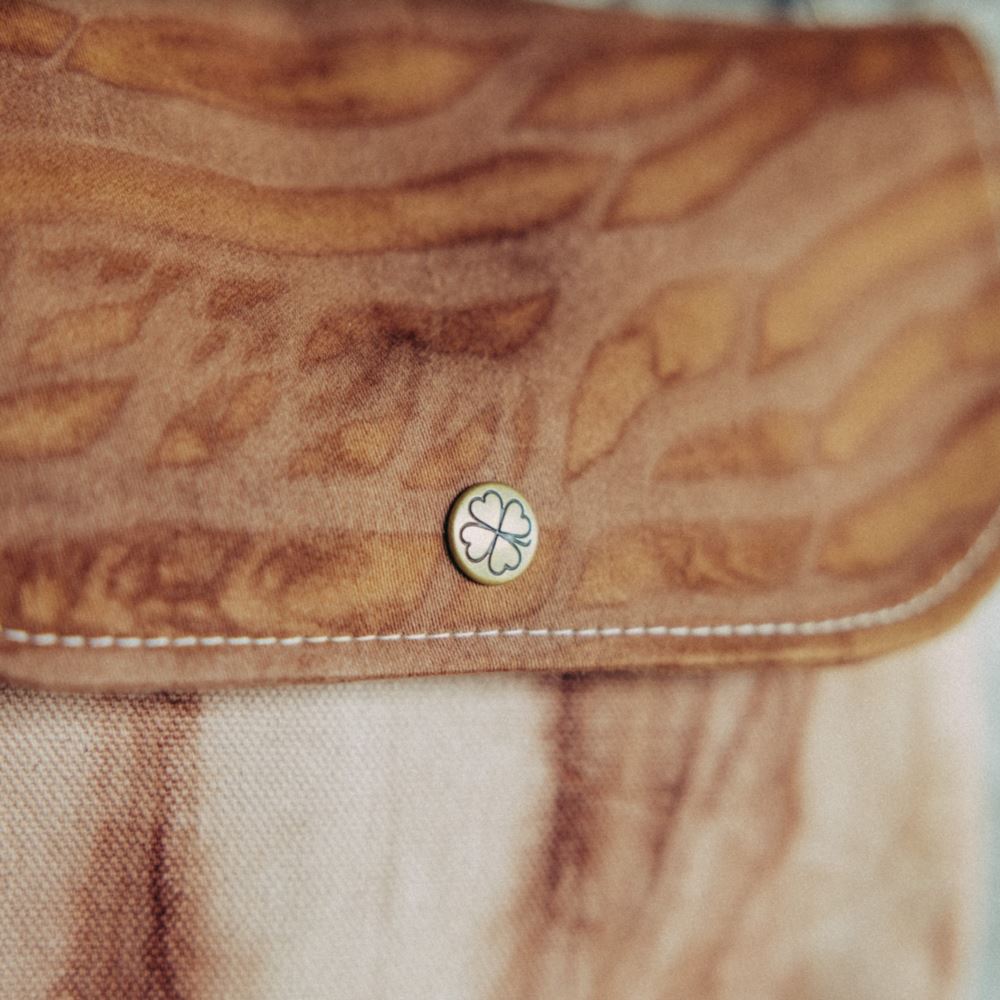 此款植物染包以各種植物萃取的染料,搭配純天然棉布,