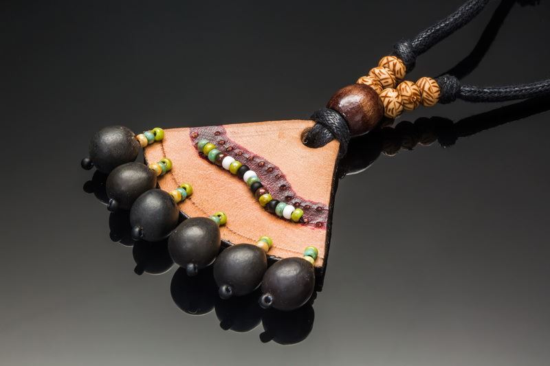 陳晏甄老師以純手工及天然素材,創作檳榔娃娃系列、情人袋、酒袋、無患子手鍊、皮雕項鍊、太陽福袋、海盜帽、樹皮檳榔娃娃吊飾系列、束口袋等,創作靈感都源自阿美族傳統服飾配件,加上新的創作思維,以貝類素材排成原民圖飾,配合些許金工與皮革元件,創作出精美的阿美族工藝品,是市場上難得一見的原住民工藝品佳作。