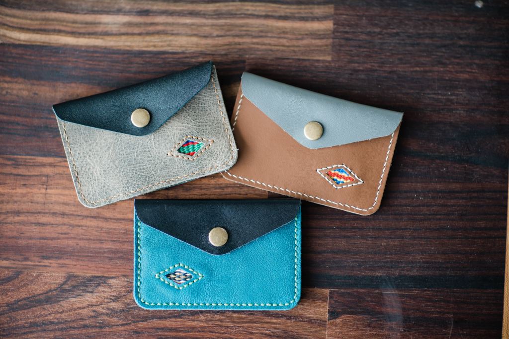 簡單的皮革搭配織布的圖騰,
