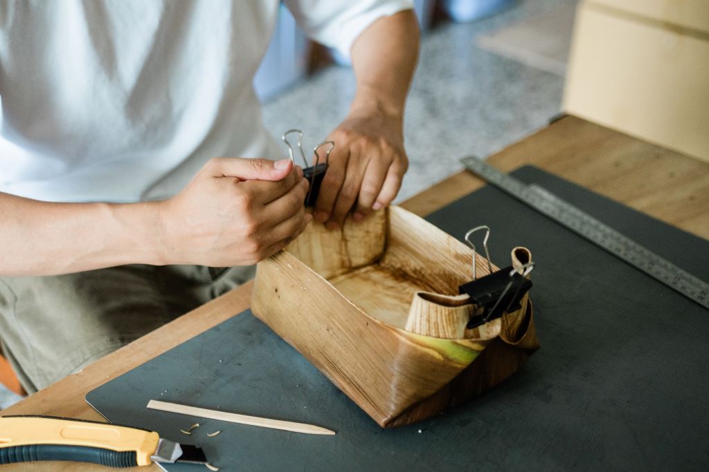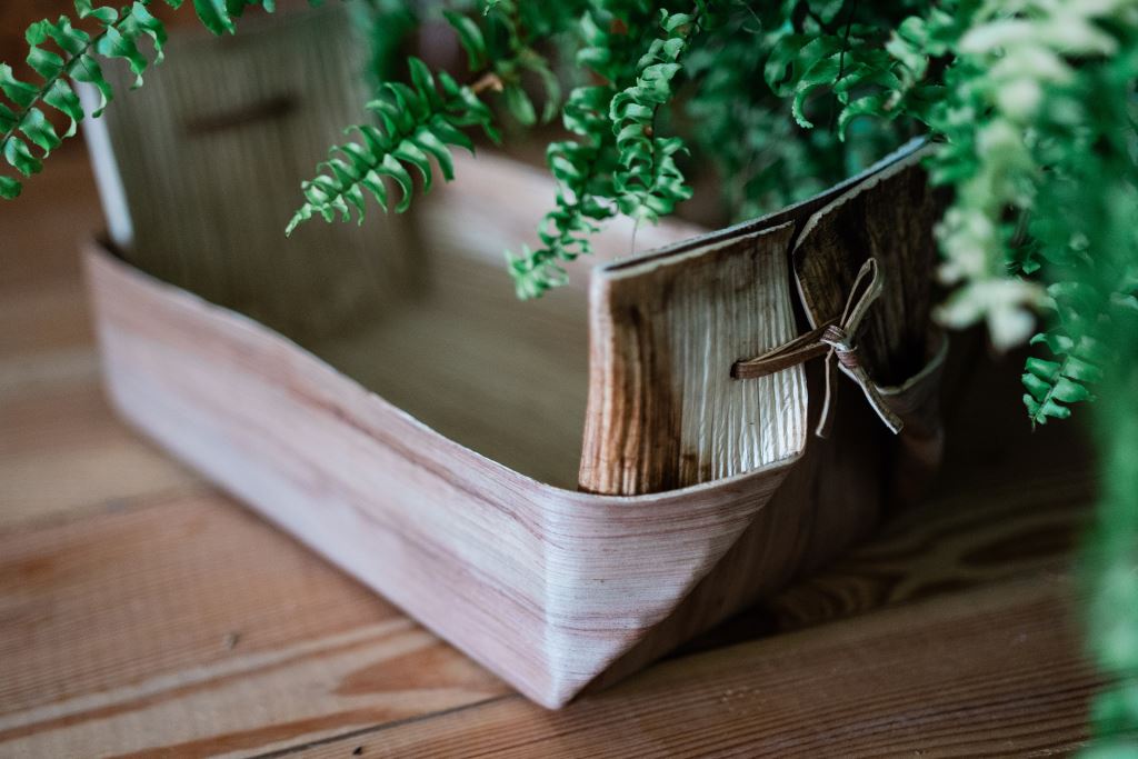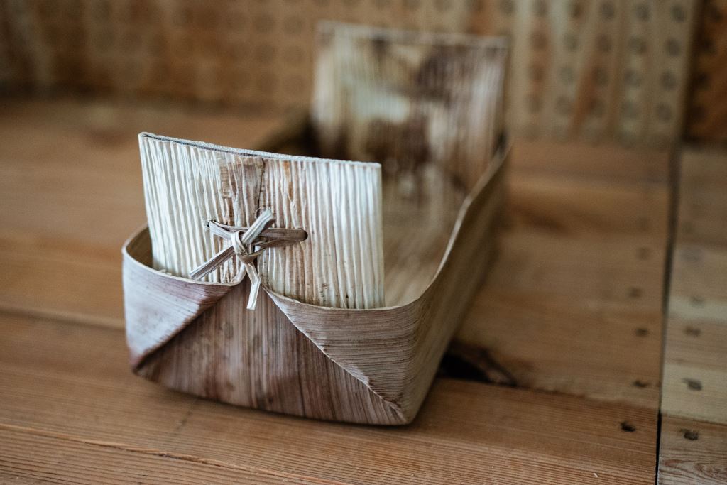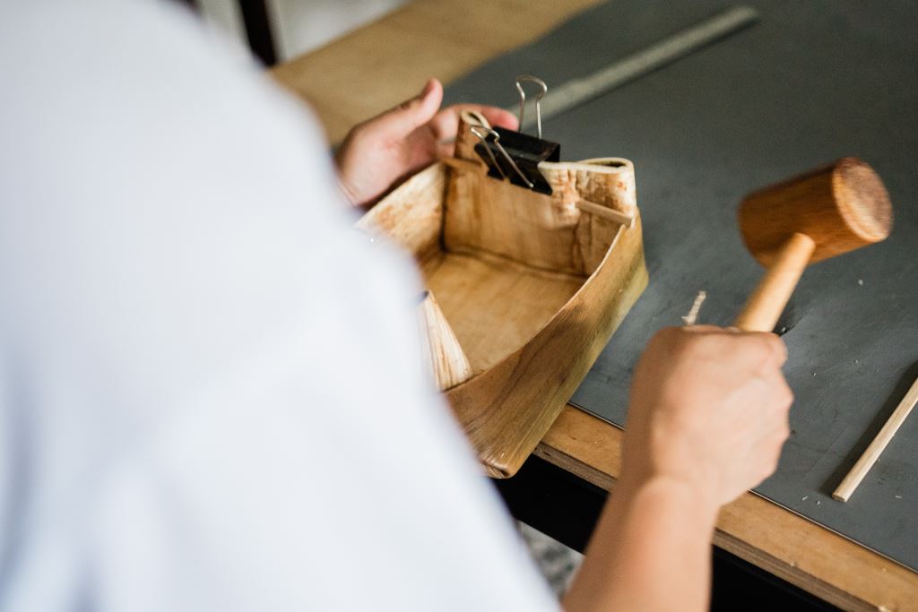 使用檳榔葉鞘製成容器,