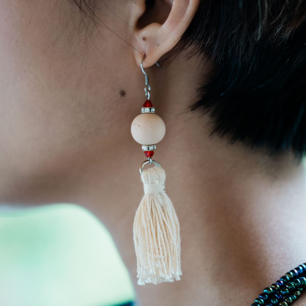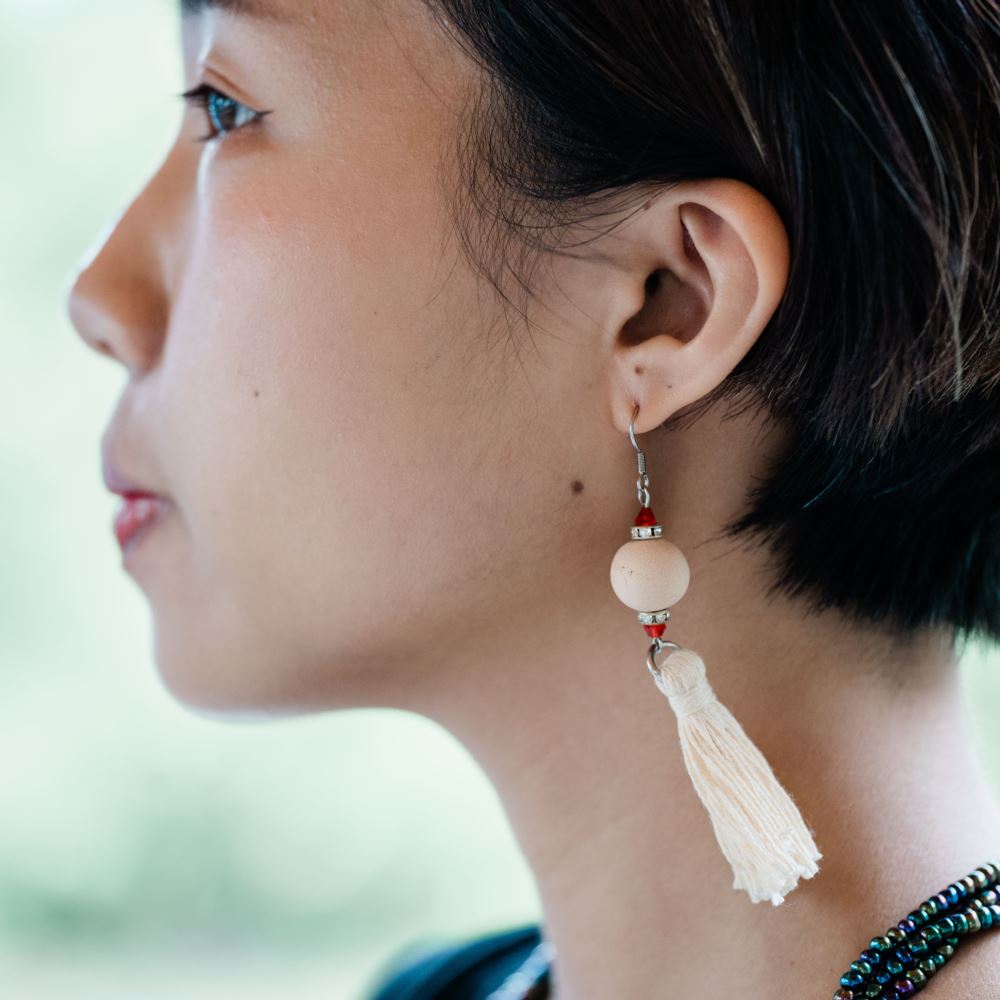 透過自學原民手工藝,經由陶珠、陶器等作品,將自己的心意放在裡頭。