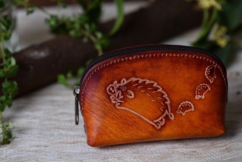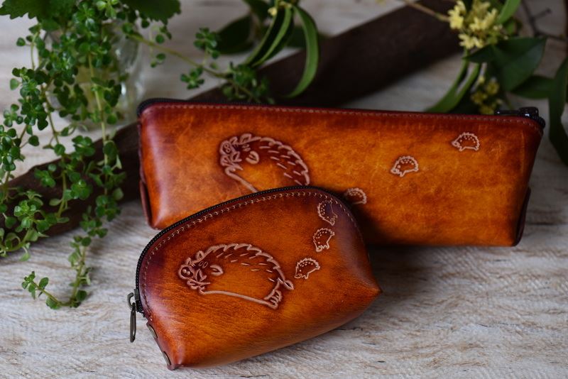 圖案設計全為百合老師與兒子自創的圖案雕法,線條自然,圖騰兼具奔放與細膩,使用物性上色法,讓牛皮上的每一色塊皆可達到完美漸層效果,清晰可見、色彩分明。