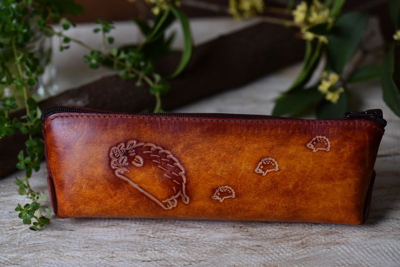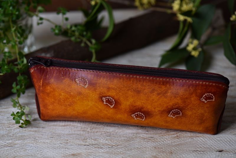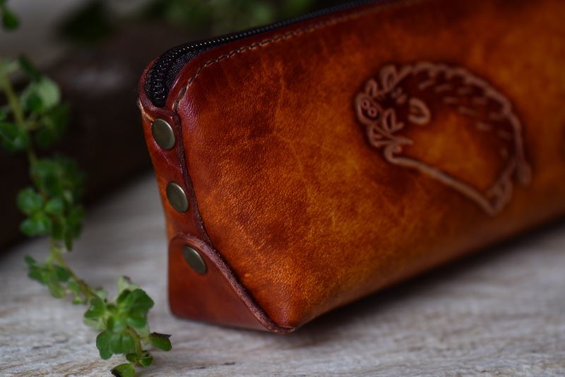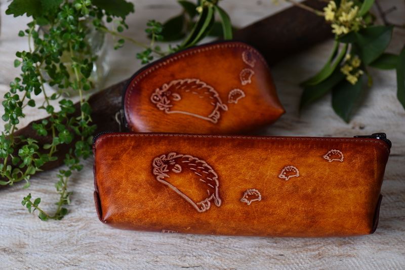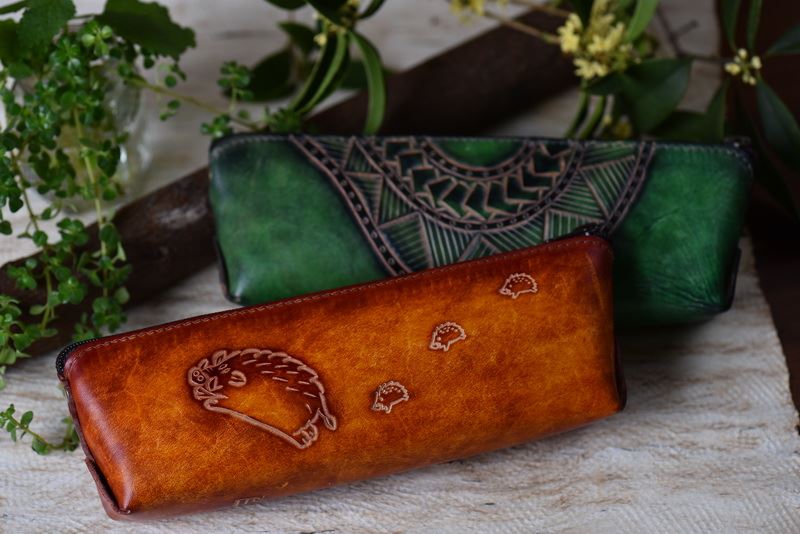 奔跑山豬(皮雕鉛筆盒)