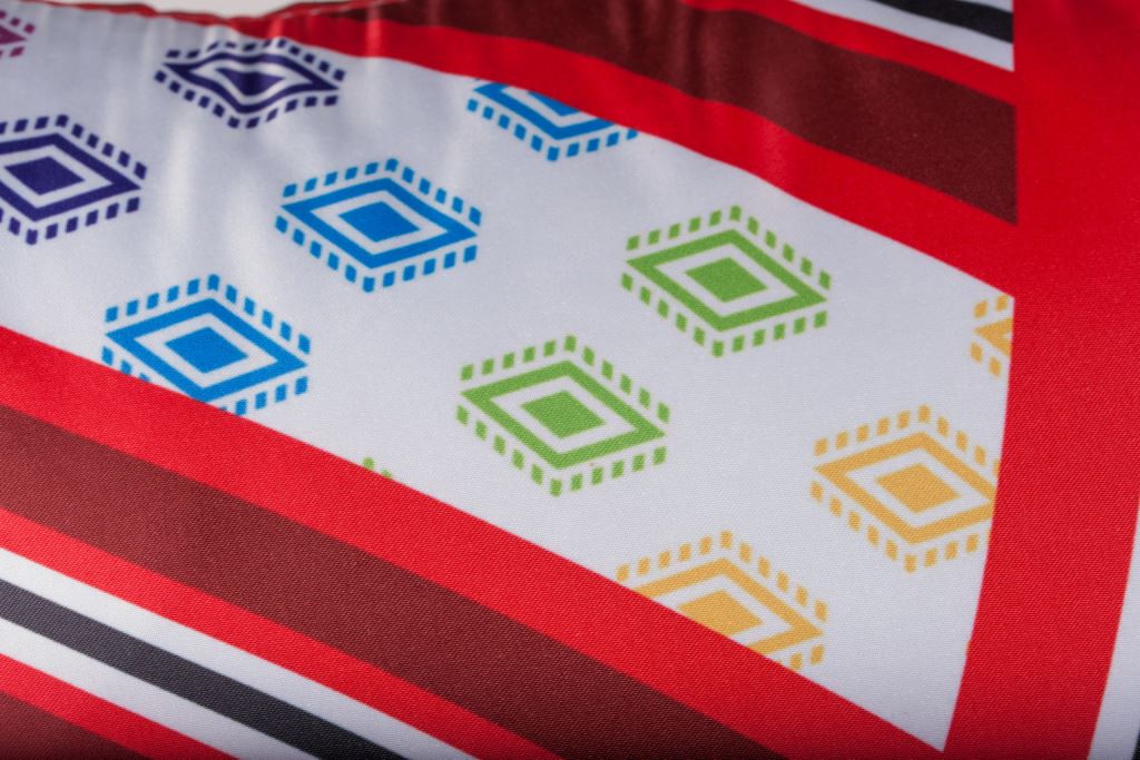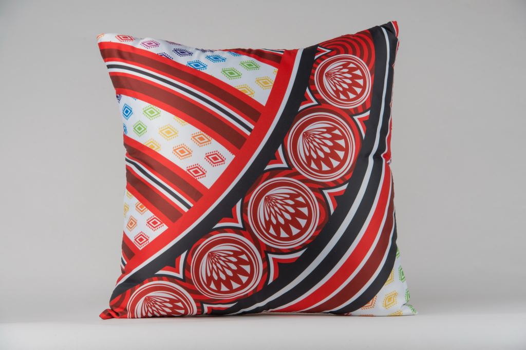 太魯閣族的服飾配色完美呈現於抱枕印花上