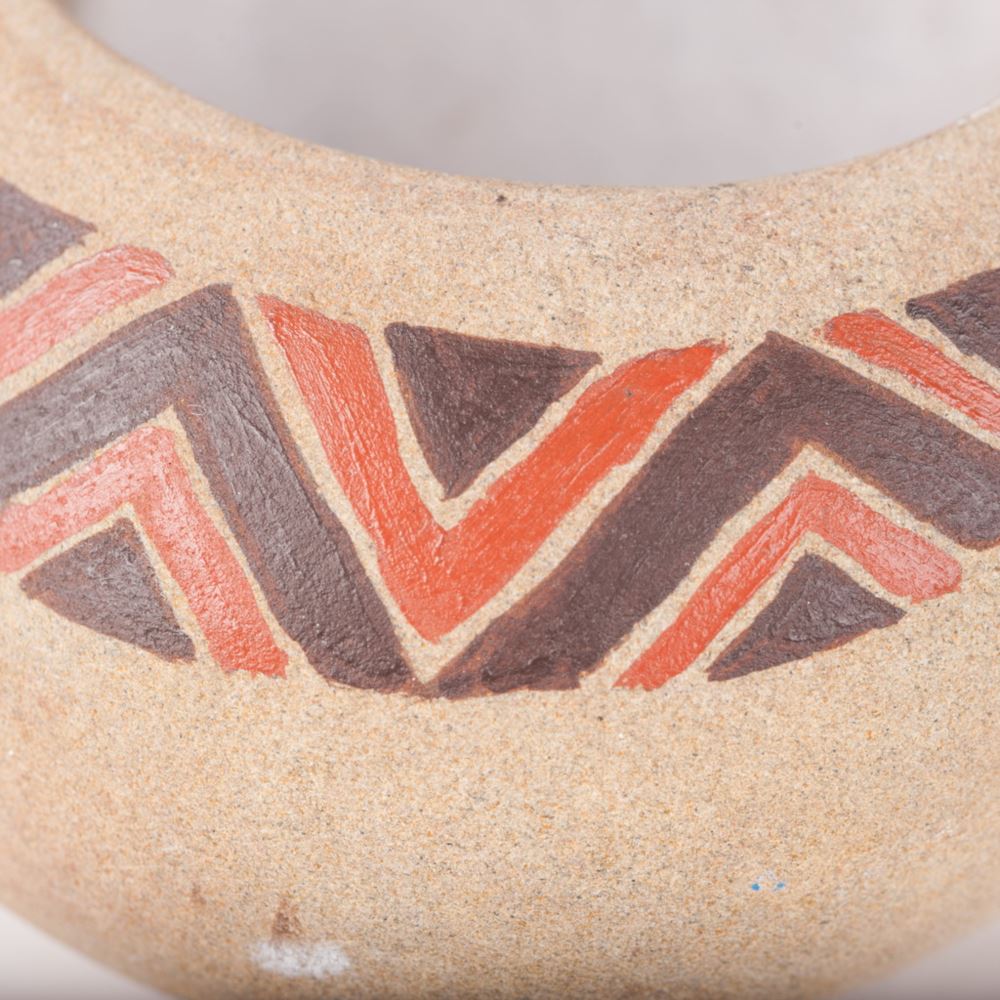 代表阿美族的山與海的線條、菱形標記代表祖靈以此圖紋找到我們,透過創作喚醒族人對過去生活記憶是最大的心願。