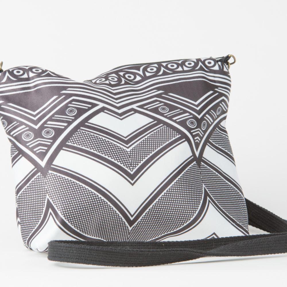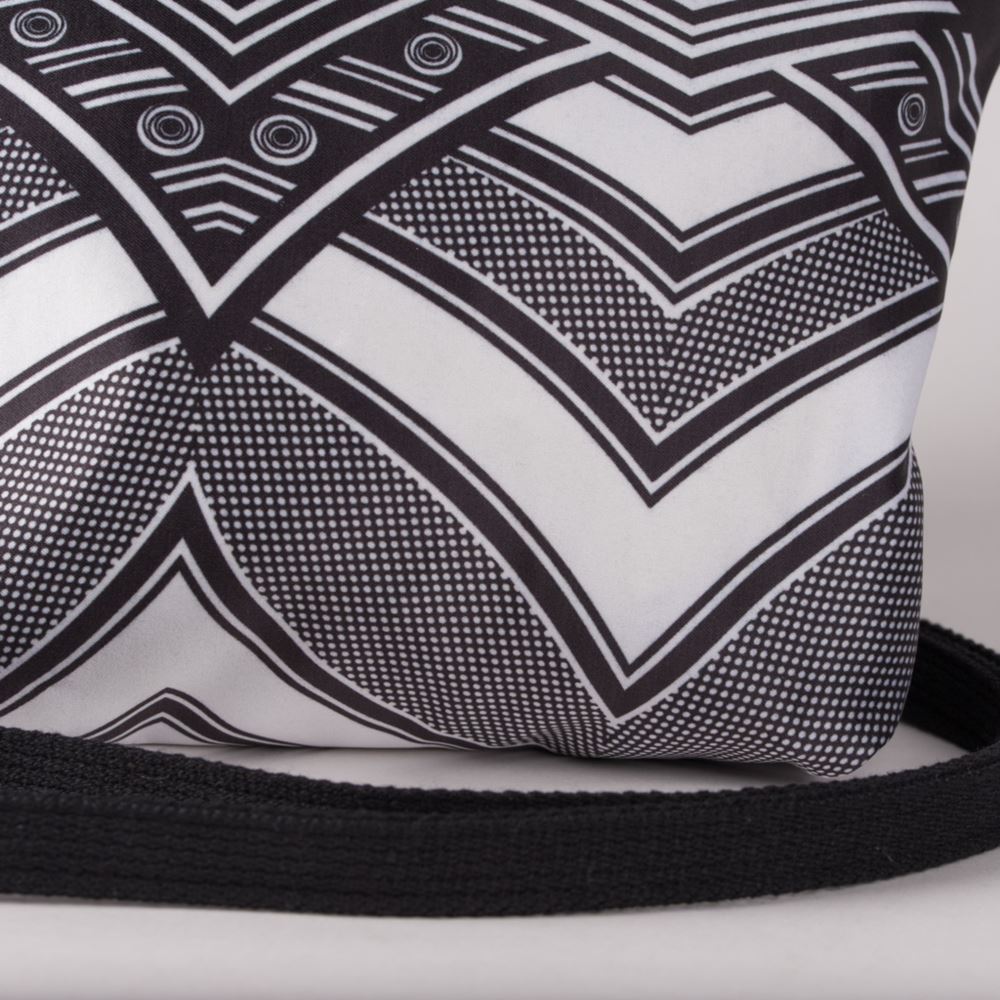 代表阿美族的山與海的線條、菱形標記代表祖靈以此圖紋找到我們,透過創作喚醒族人對過去生活記憶是最大的心願。