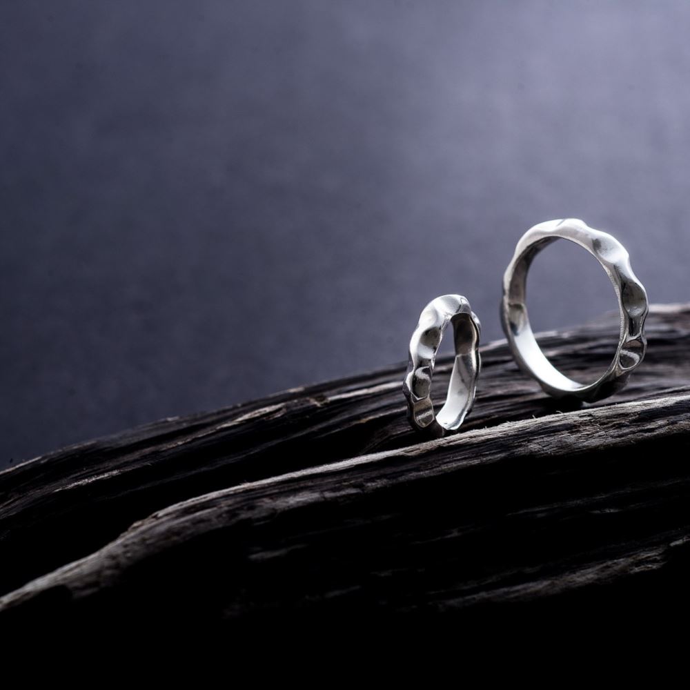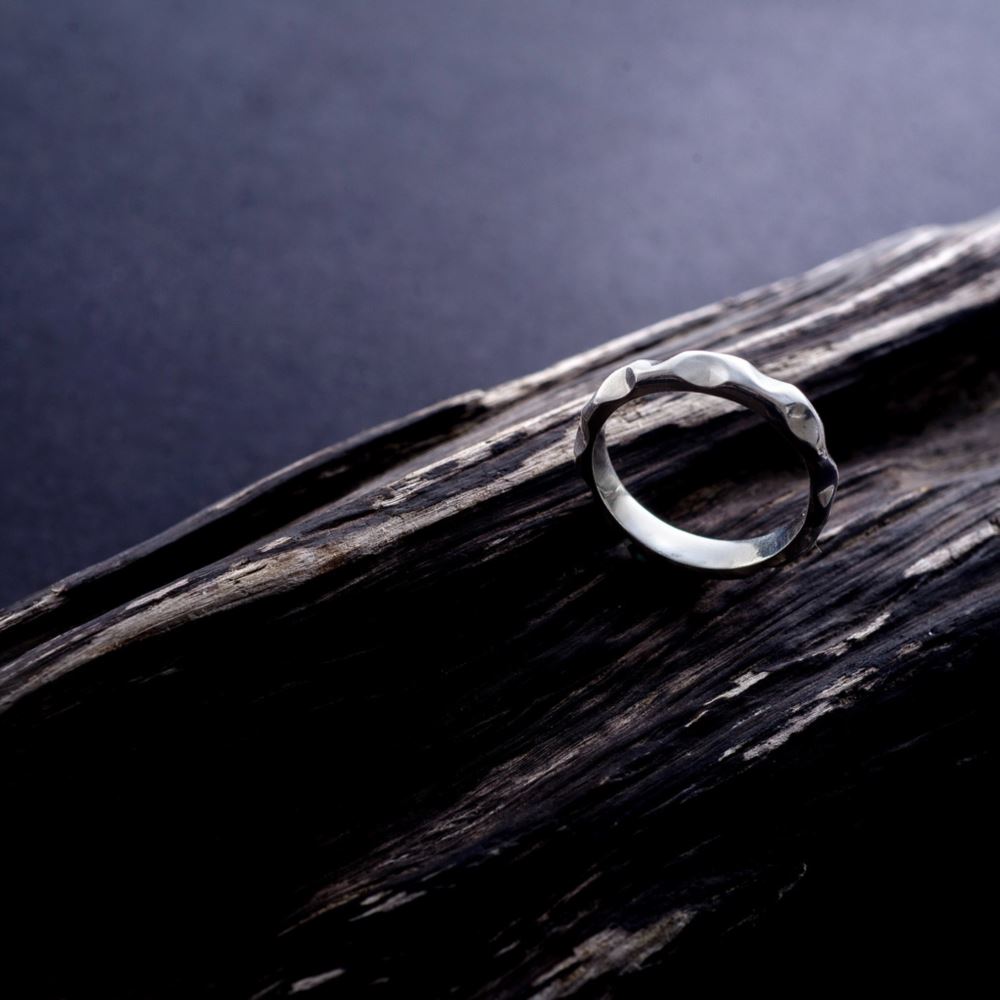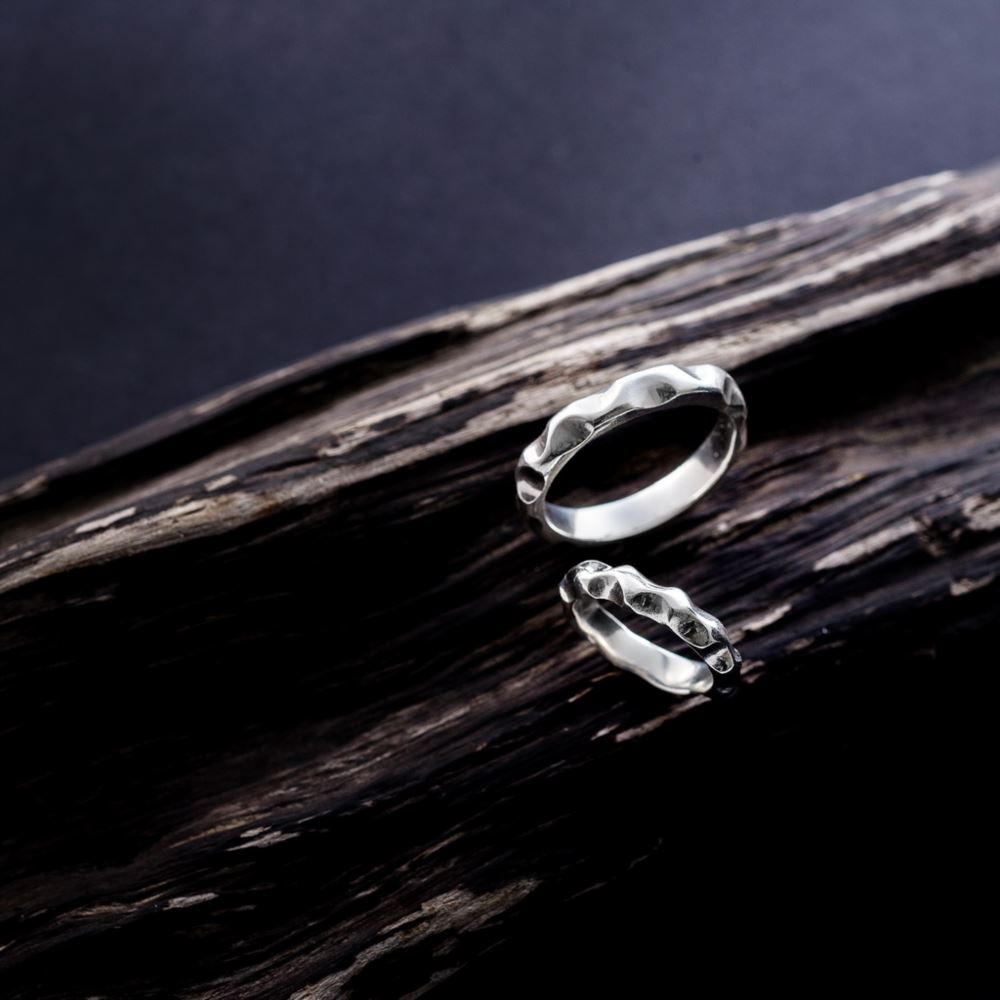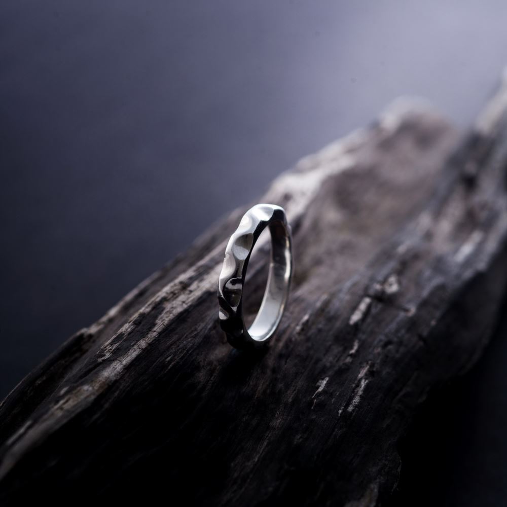窄版戒環配上不規則波紋,呈現簡約的線條