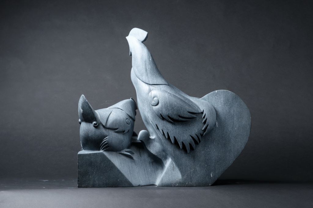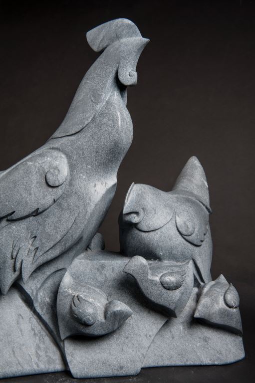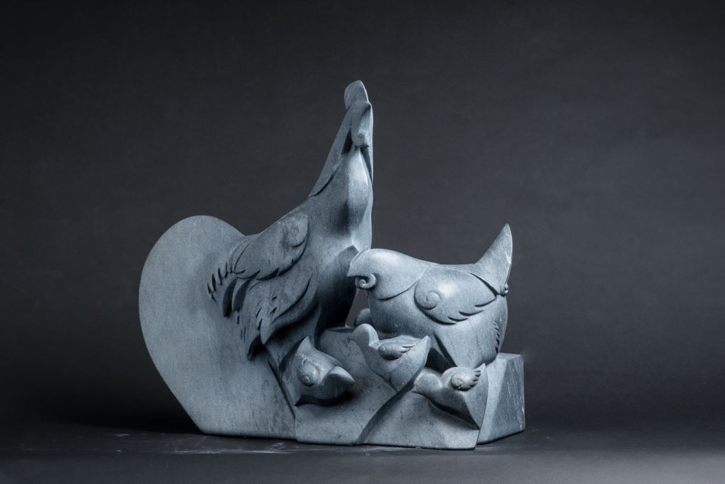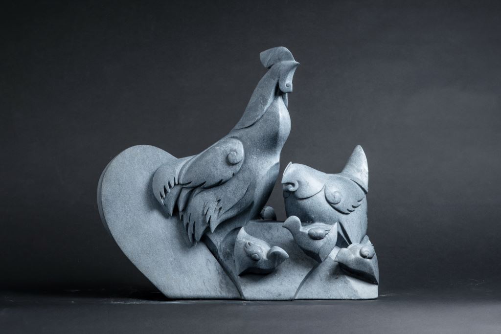 獨一無二的石雕,細膩的刻畫出每一隻雞的線條