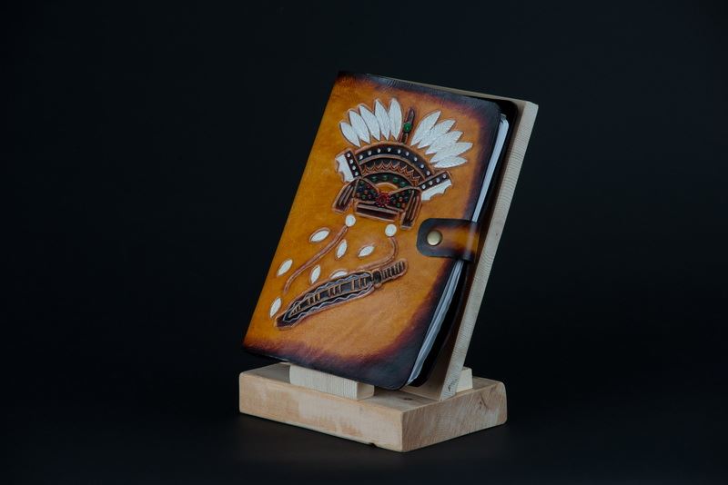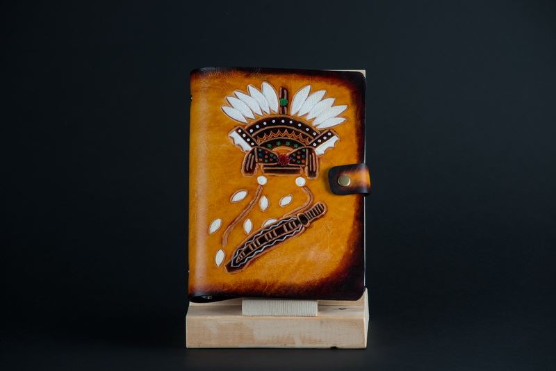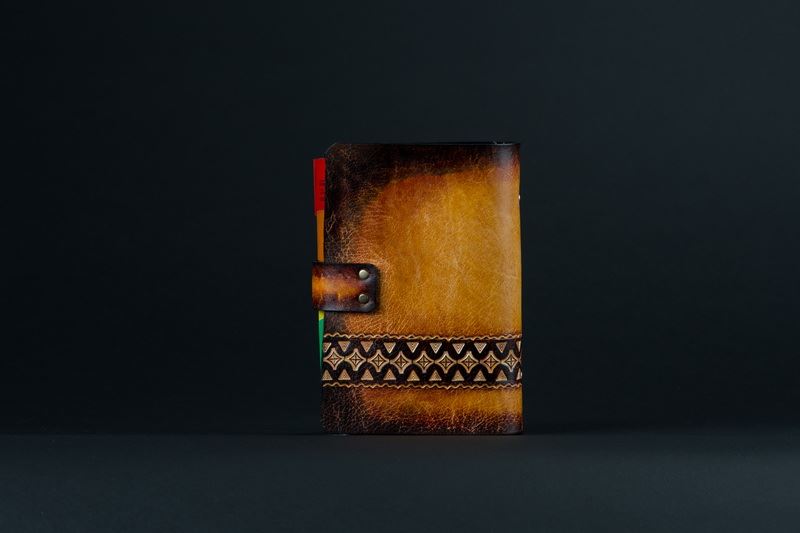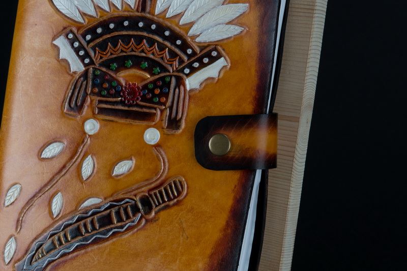 圖案設計全為伊浪老師自創的圖案雕法,線條自然,使用物性上色法,讓牛皮上的每一色塊皆不暈染,清晰可見的色彩分明。