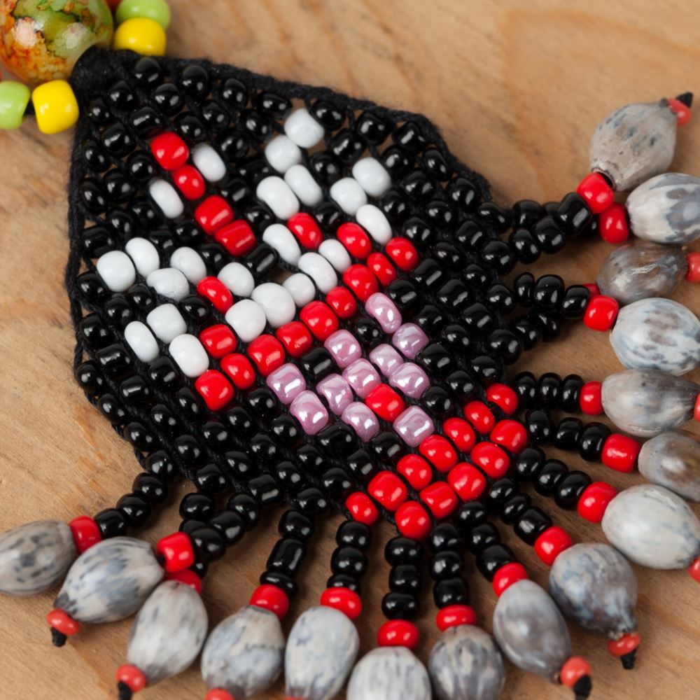 串珠的豐豔多彩,最能代表阿美族的樂天性情,阿美族的傳統服飾,除了豔麗的色彩,配戴大量的彩珠也是其色彩亮麗的特色,配合精美的串珠工藝,在傳統服飾中,更可以發揮畫龍點睛的作用。