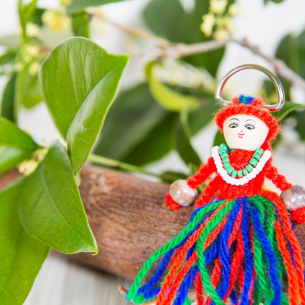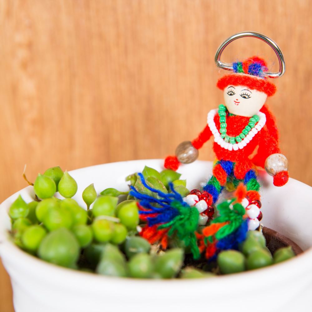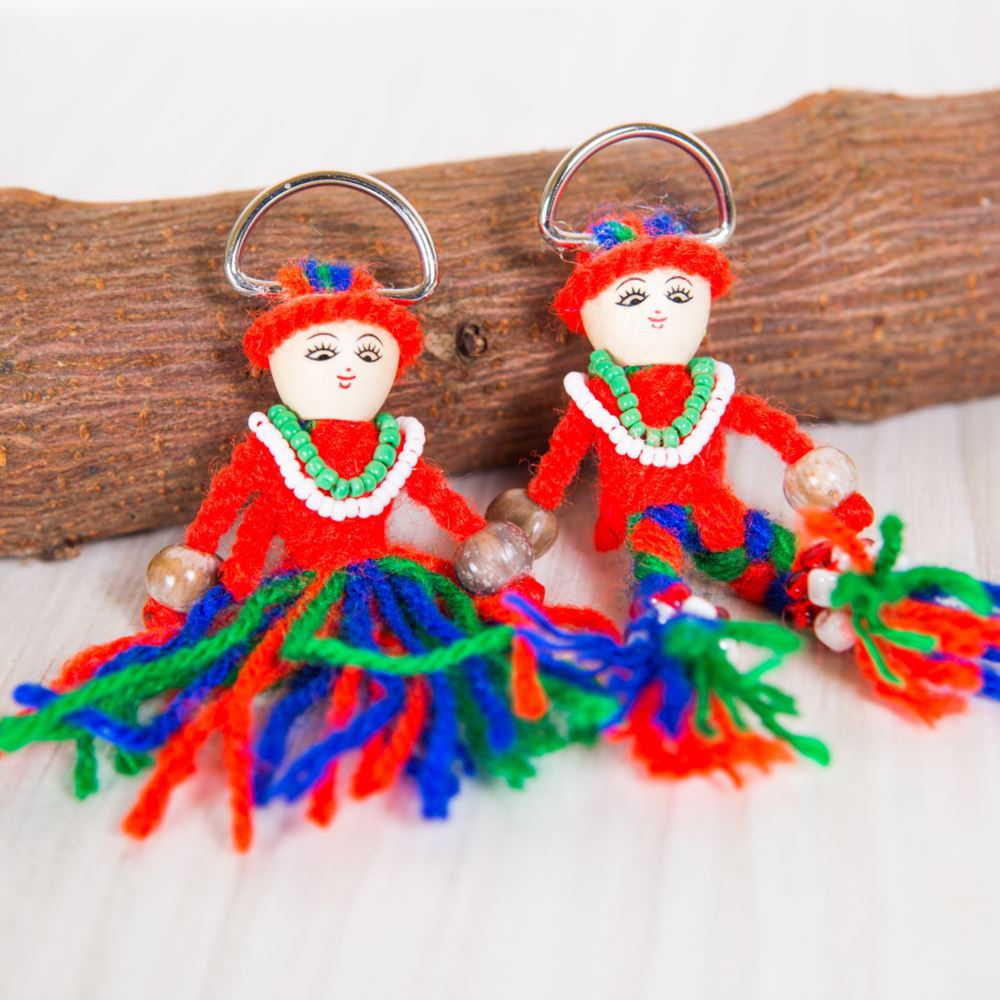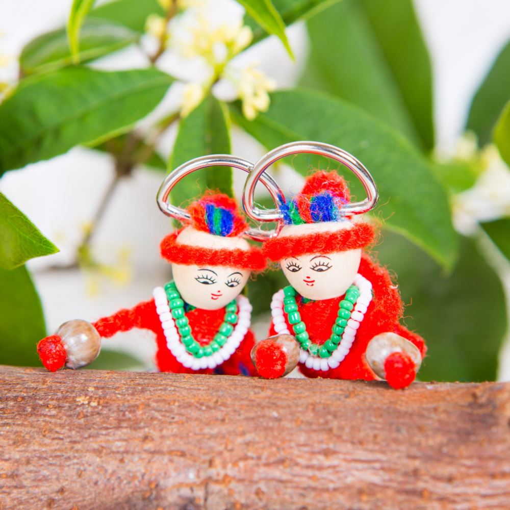 傳統串珠編織技法,男女玩偶表情逗趣。