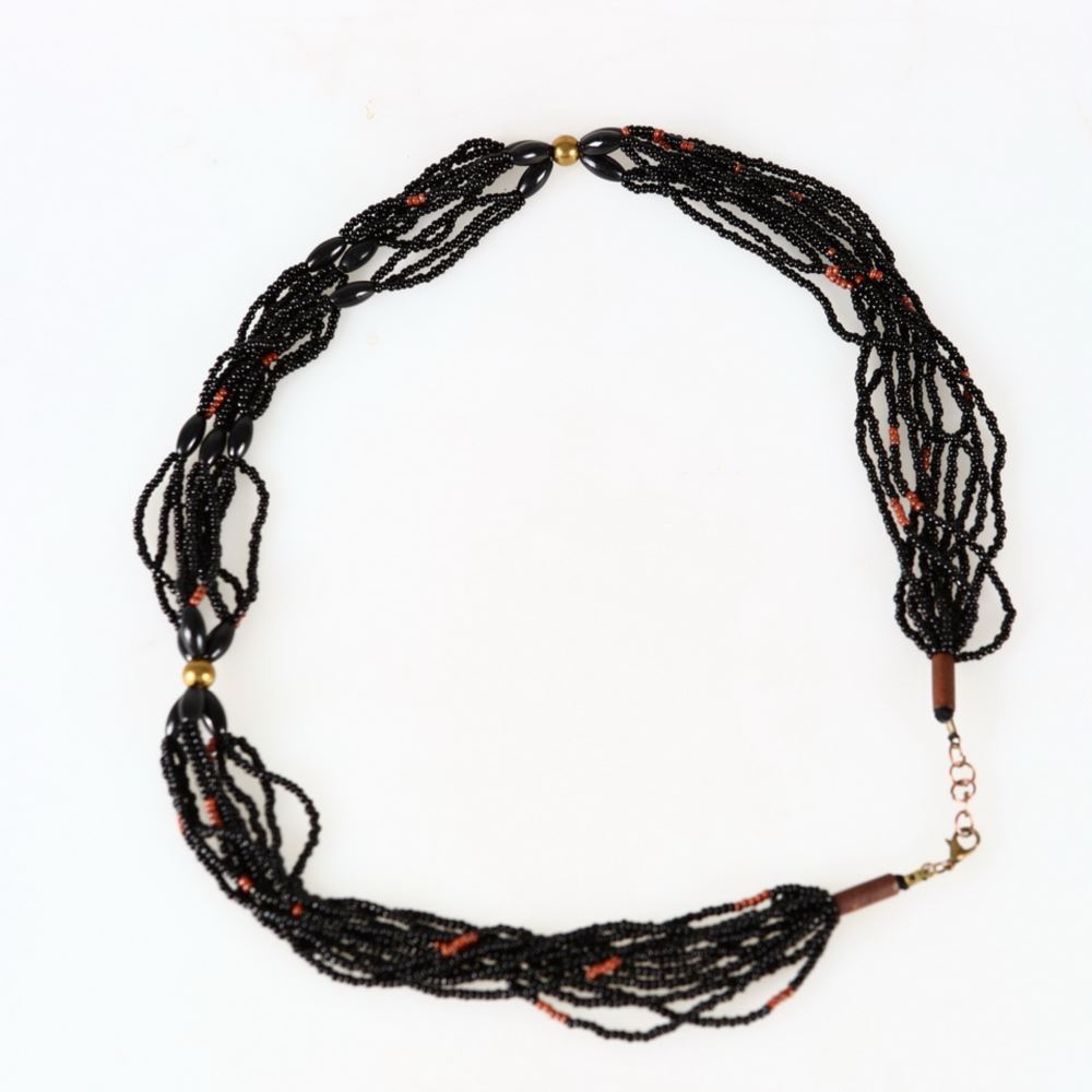 材質 : 尼龍絲線、串珠、鍊扣、黃銅珠。