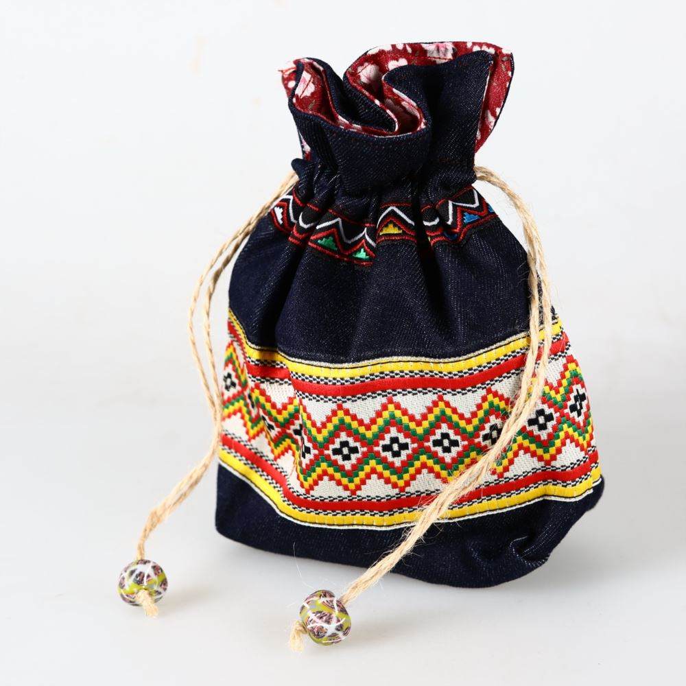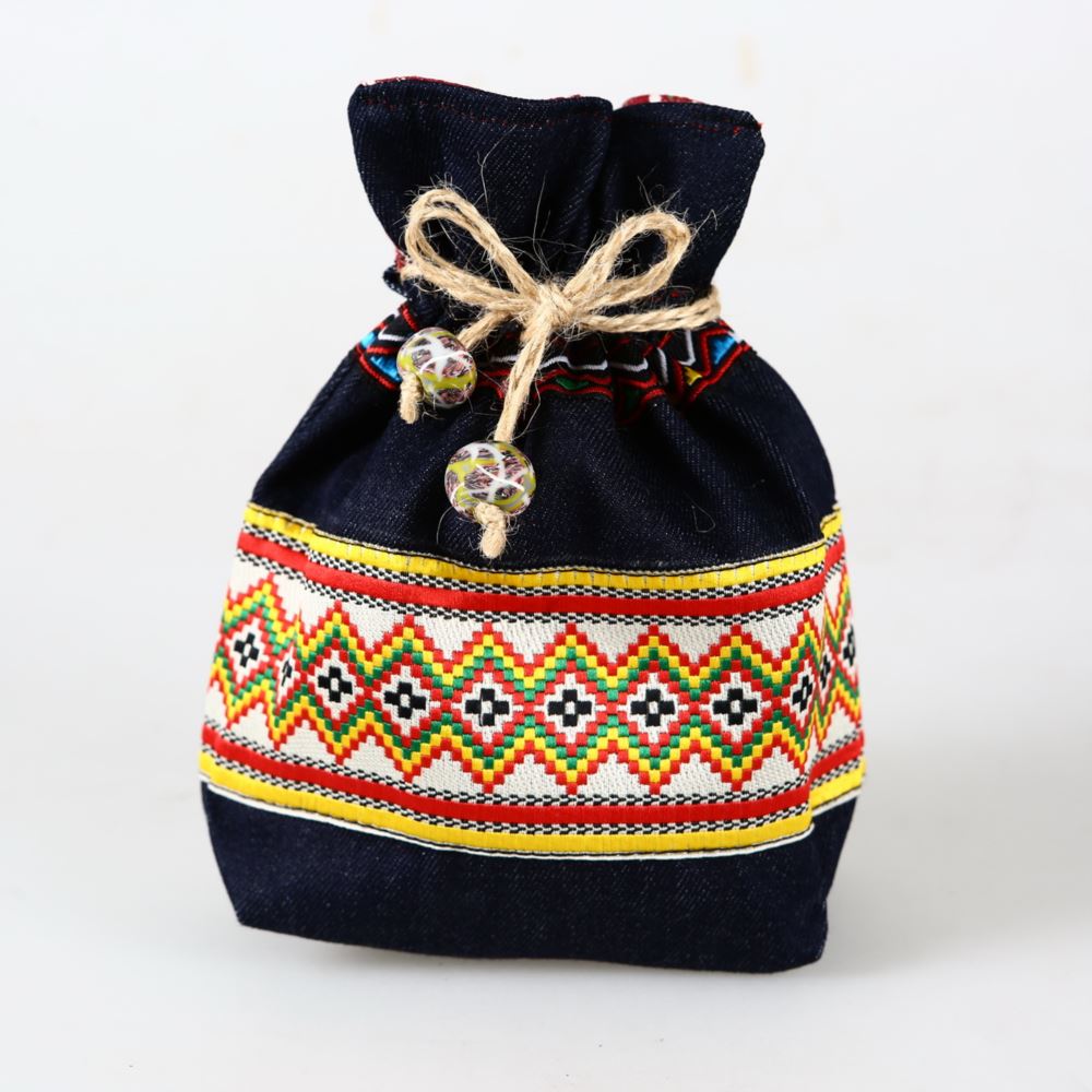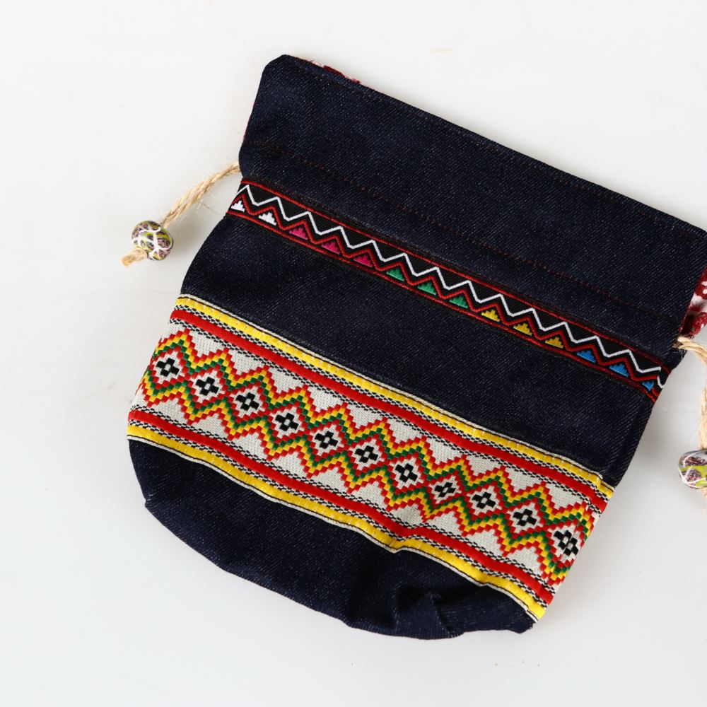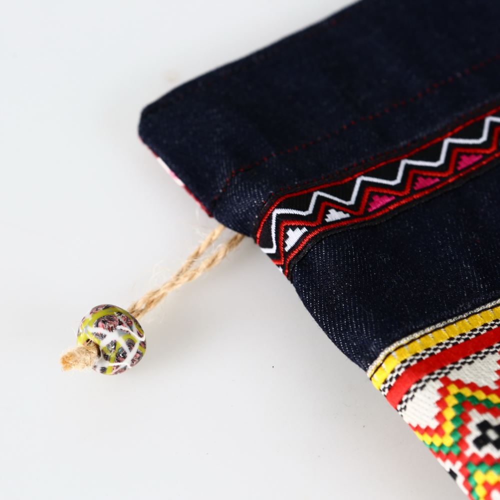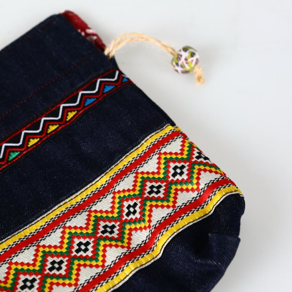 材質 : 牛仔布、電繡圖騰、棉線、陶珠。