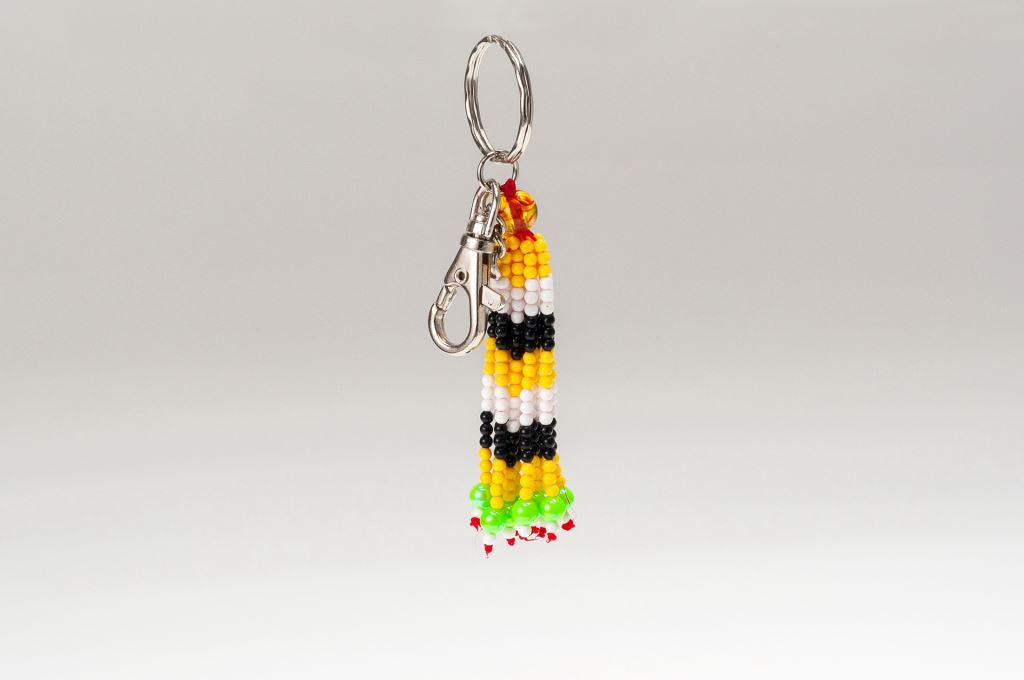 溫老師把串珠工藝導進生活用品中,如鑰匙圈、手機吊飾、耳環、手鍊、手環、項鍊等之類的工藝飾品,配合薏苡珠的應用,以薏苡珠做為串珠的主角,創作出不同造型的手工藝品,是木別子工坊所擅長的創作項目,讓串珠工藝呈現更多樣變化的原民特色,加上時尚的配色與造形,引進原民風格,讓原民色彩融入現代生活中,這也是現代原民工藝的發展趨勢。