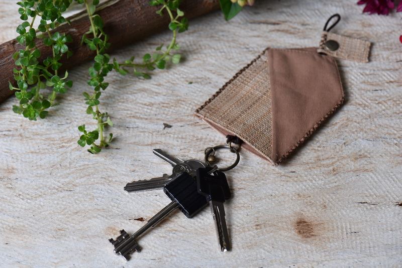 新社香蕉絲工坊發揮創意,按照米穀袋的原型設計出米穀鑰匙包,外型就像縮小的的米穀袋,細密的香蕉絲布接上帆布,耐髒不易磨損,常常觸摸香蕉絲會讓色澤越來越光亮。