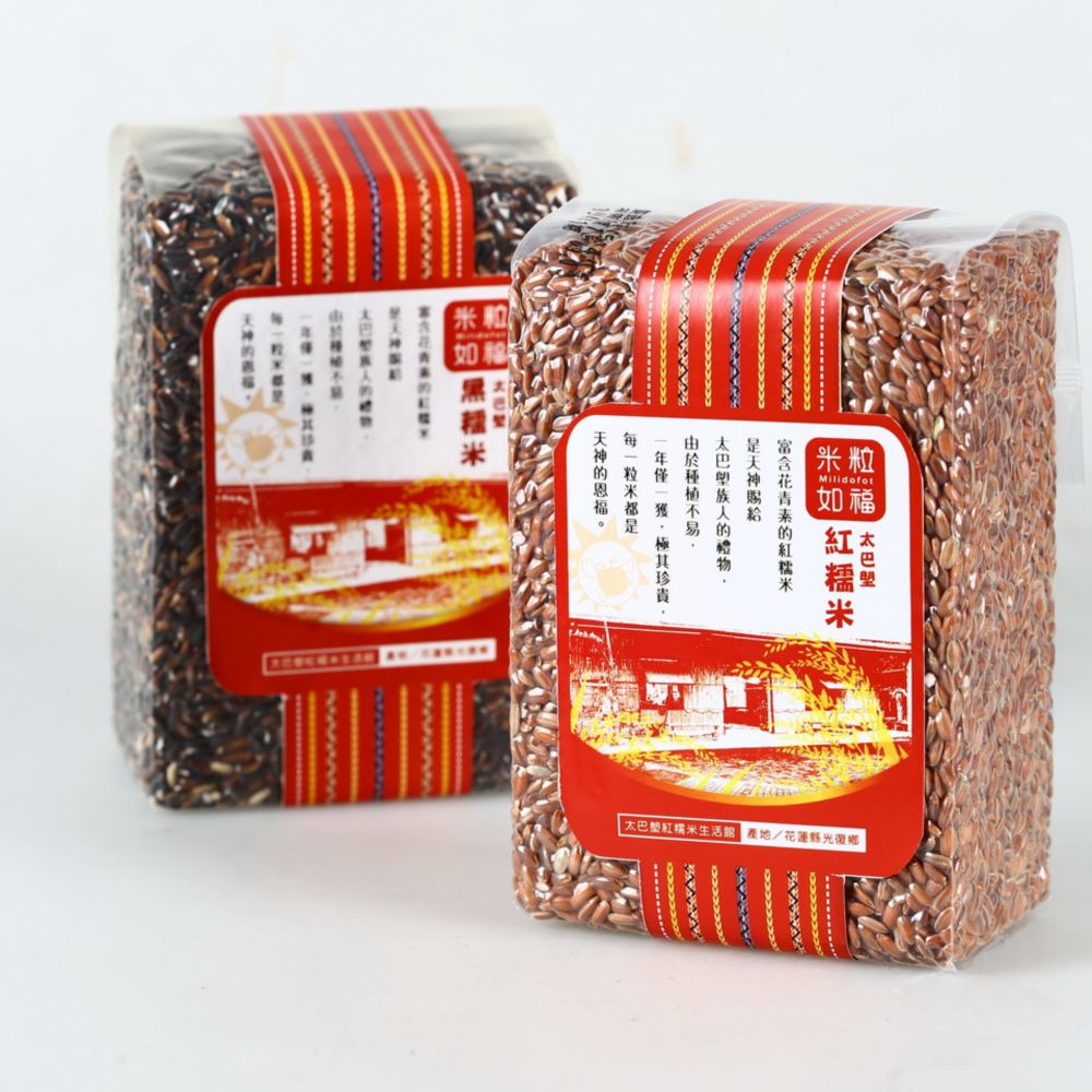 紅糯米為社區特有的農產品,色澤鮮艷、香味濃郁的紅糯米,是台灣唯一產地太巴塱部落的特產,紅糯米也是屬於一種香米,口感Q軟緊實,香氣濃烈。太巴塱阿美族以務農為主、狩獵為輔,於農閒期或收割後,即進行狩獵工作, 獵獲之獸禽留皮製成皮袋、皮衣等,鮮少加以雕飾。「雕」乃是國外引進之技術,1998年由陳明珠校長推動皮雕研習,以阿美族理念為基礎將圖騰日常生活傳說故事、各類祭典之圖像,在皮件上作畫並加以雕飾,成為太巴塱部落新的文創產業。