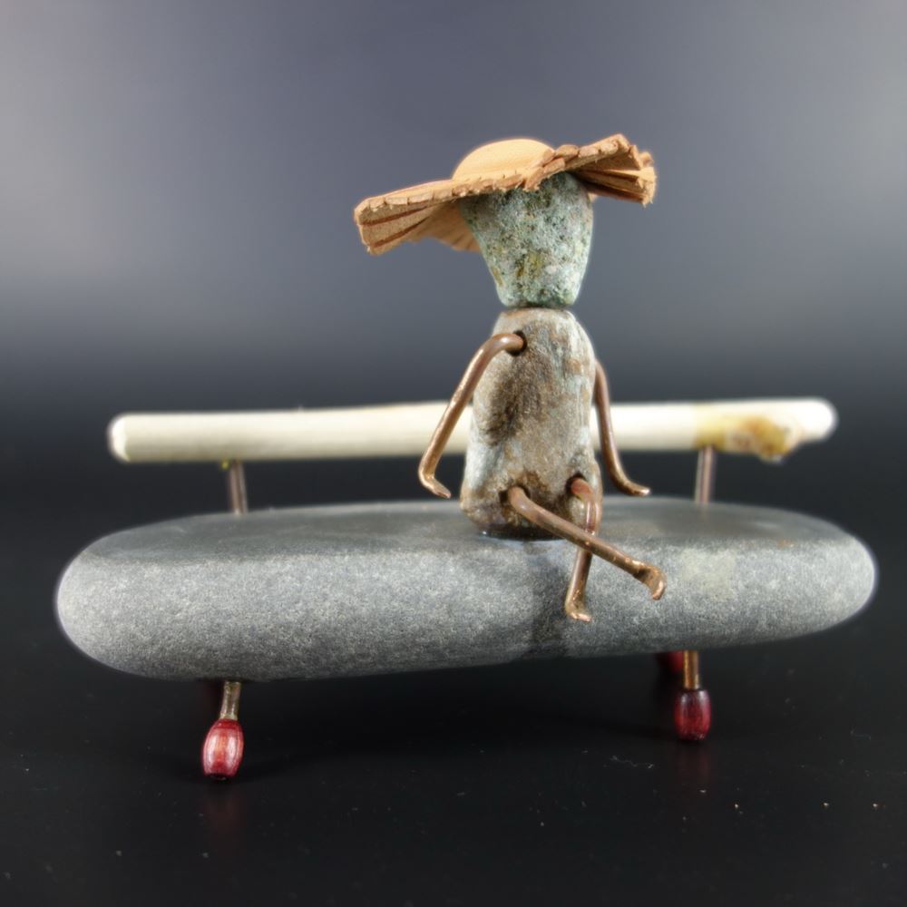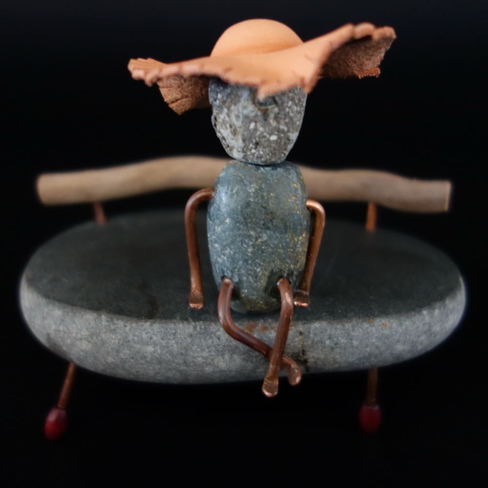 一個石頭上坐了一個小孩,面無表情的他,感覺在放空,不管是自用或是送人,將它擺在桌上,當你累了的時,可以台起頭來看看它,會不自覺得很放鬆。