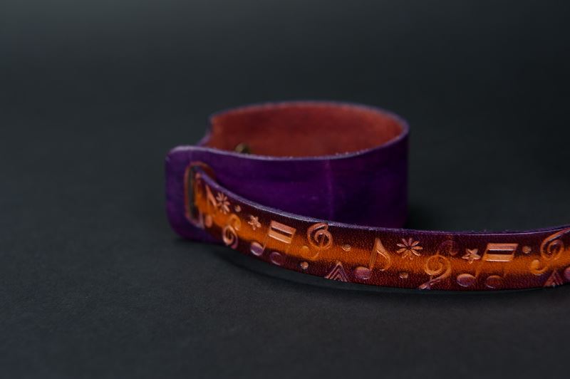 在牛皮的色塊刻上音符的圖案,彷彿有音樂在手上跳動著,讓你每天的生活辦旋律,快樂的過每一天,這很適合送給朋友,是一個很值得也很棒的禮物。