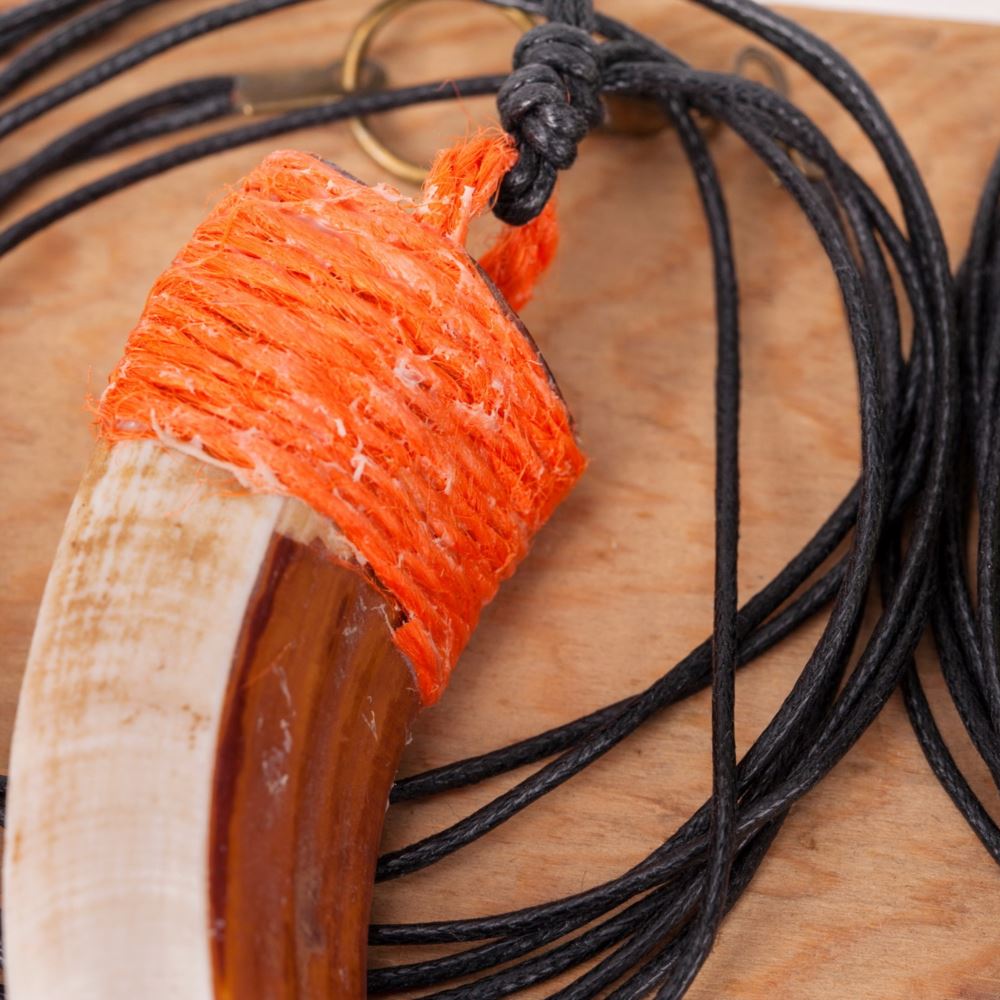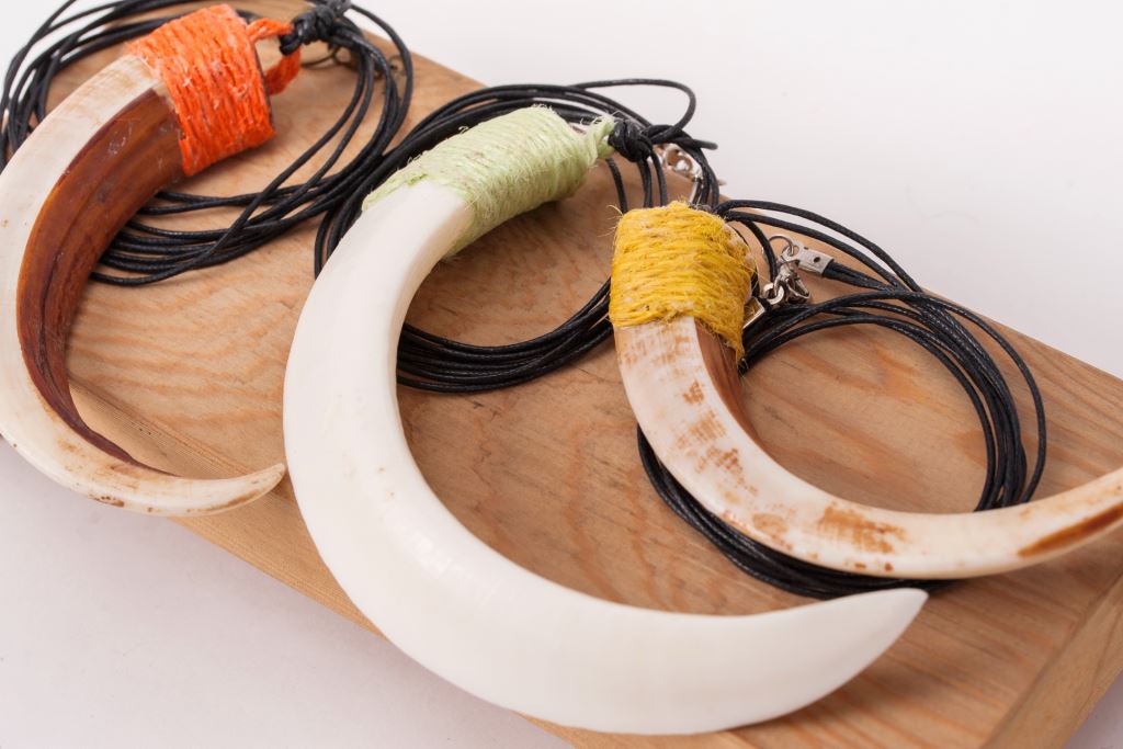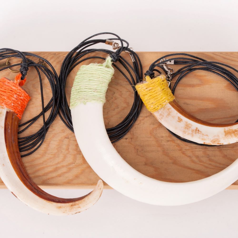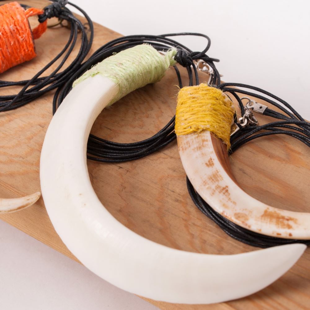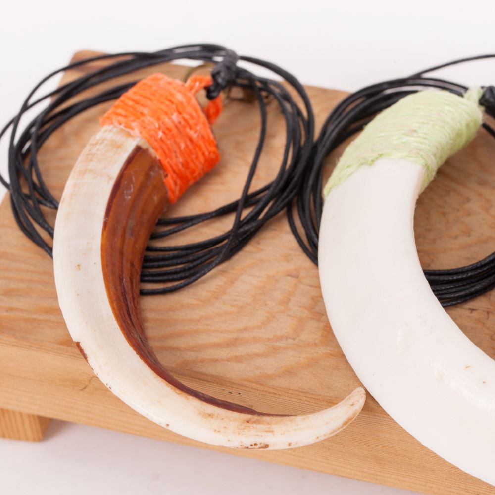 材質 : 山豬牙、金屬勾、綿線。