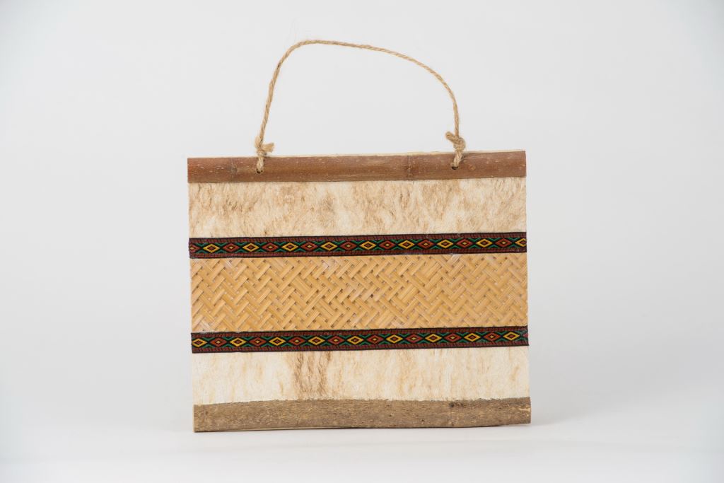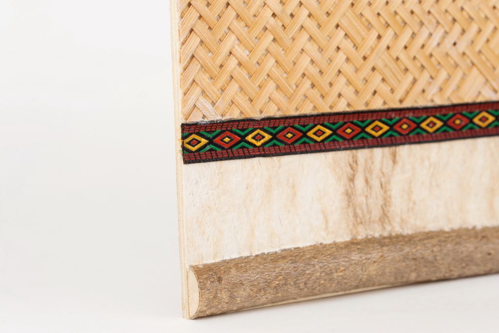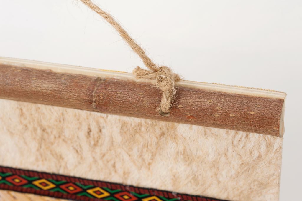 材質 : 樹皮、木板、木飾片、編織布、麻線。
