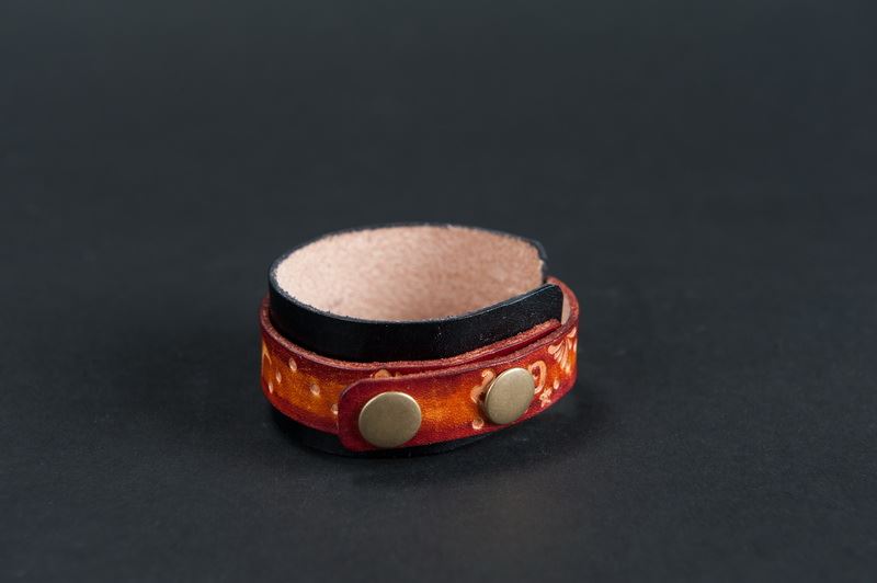 圖案設計全為伊浪老師自創的圖案雕法,線條自然,使用物性上色法,讓牛皮上的每一色塊皆不暈染,清晰可見的色彩分明。