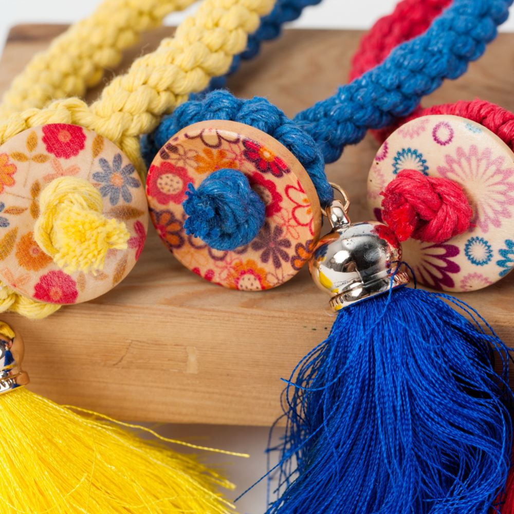 材質 : 麻線、扣環、飾片。